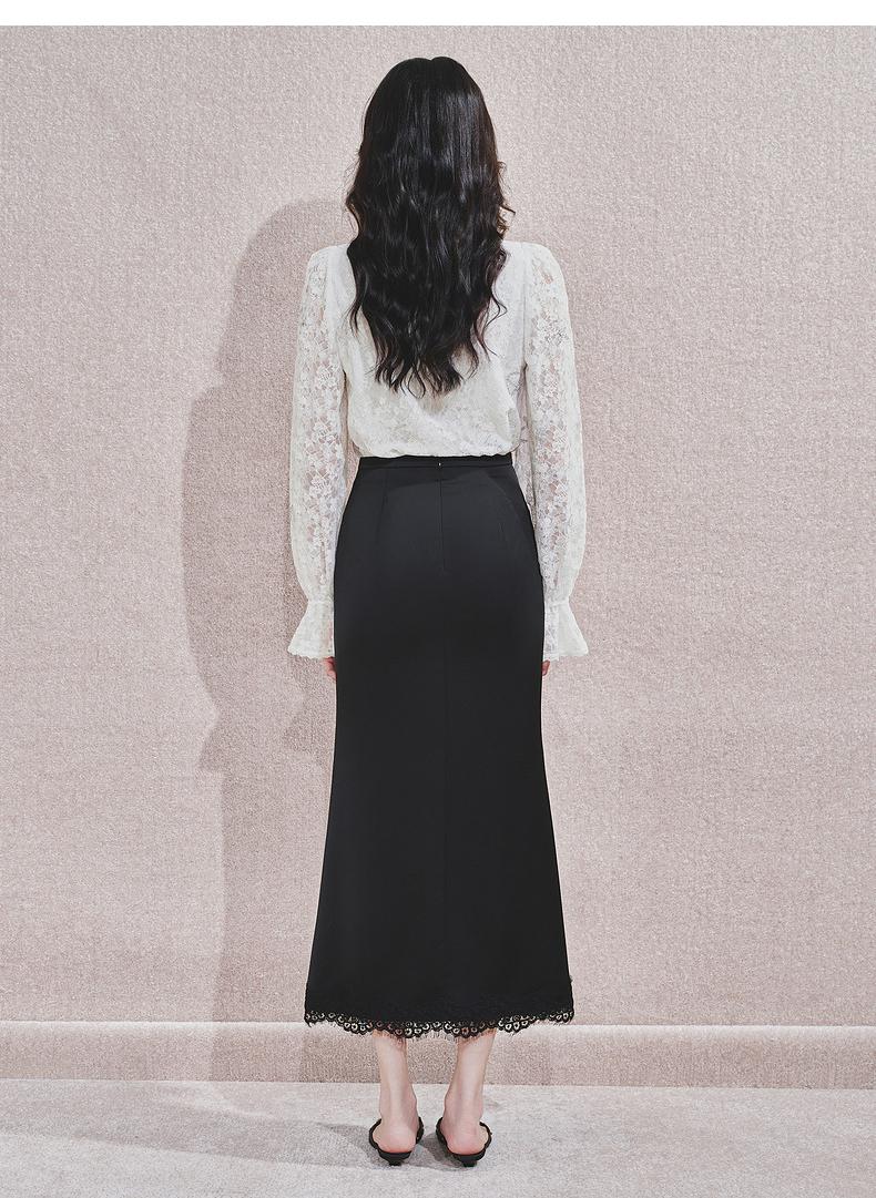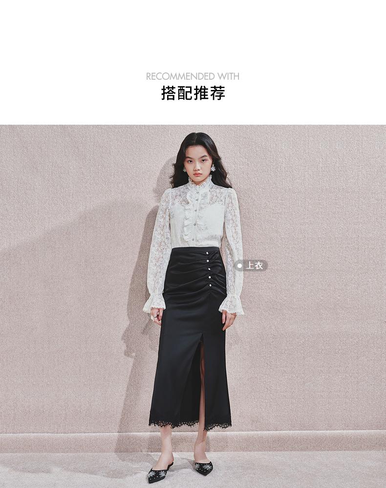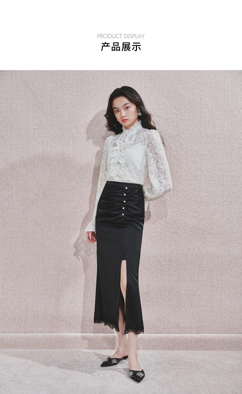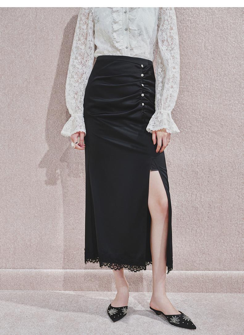 MAXRIENY2024复古浪漫感开叉蕾丝缎面半裙约会小裙子包臀半身裙(货号:MF85SK757)