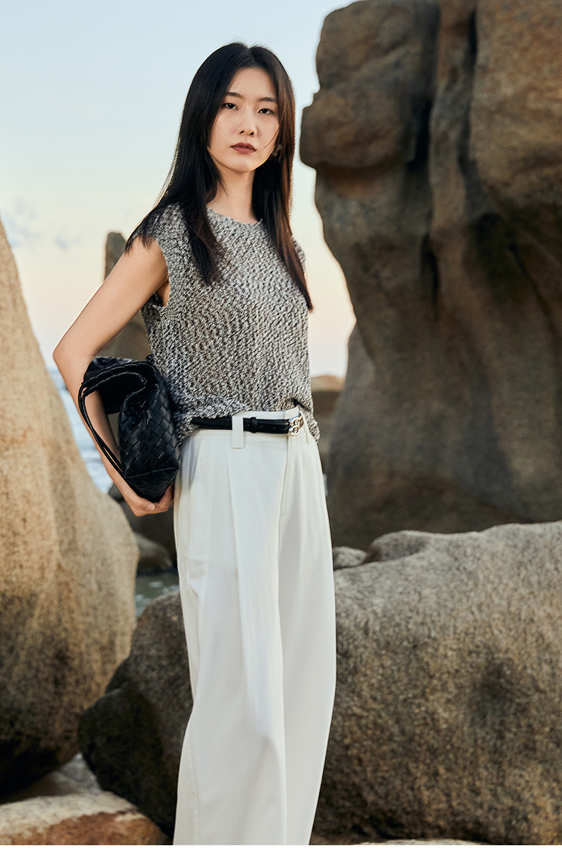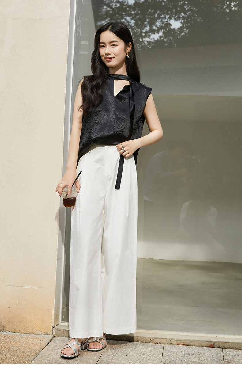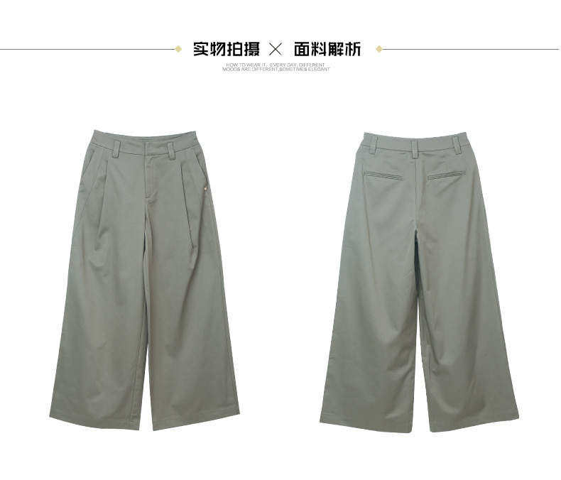 高级感灰绿阔腿西装裤 高腰压褶垂坠长裤 职场通勤显瘦直筒裤