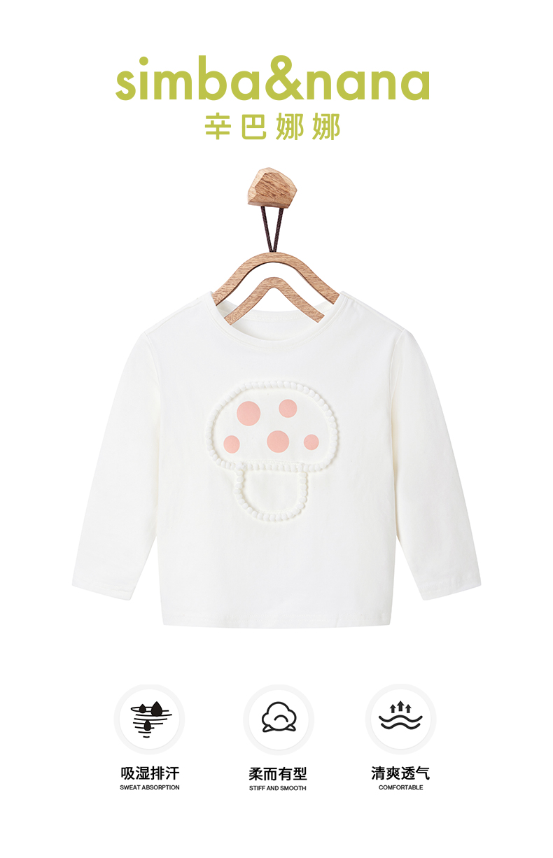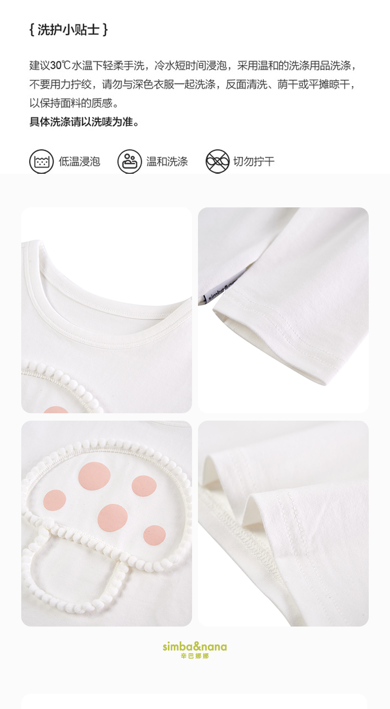 【辛巴娜娜】simbanana儿童长袖T恤女童春秋季舒适亲肤小蘑菇印花衣服
