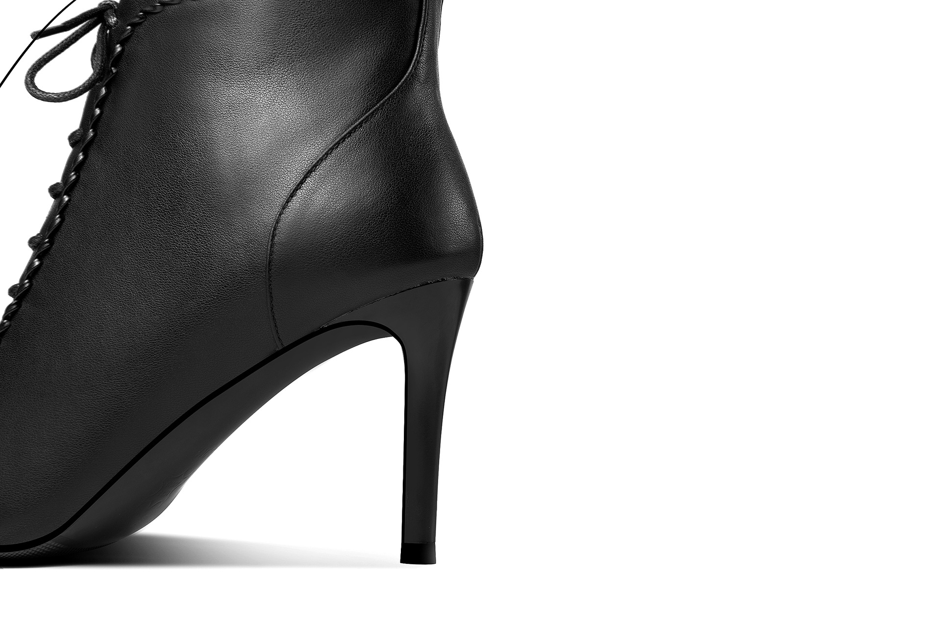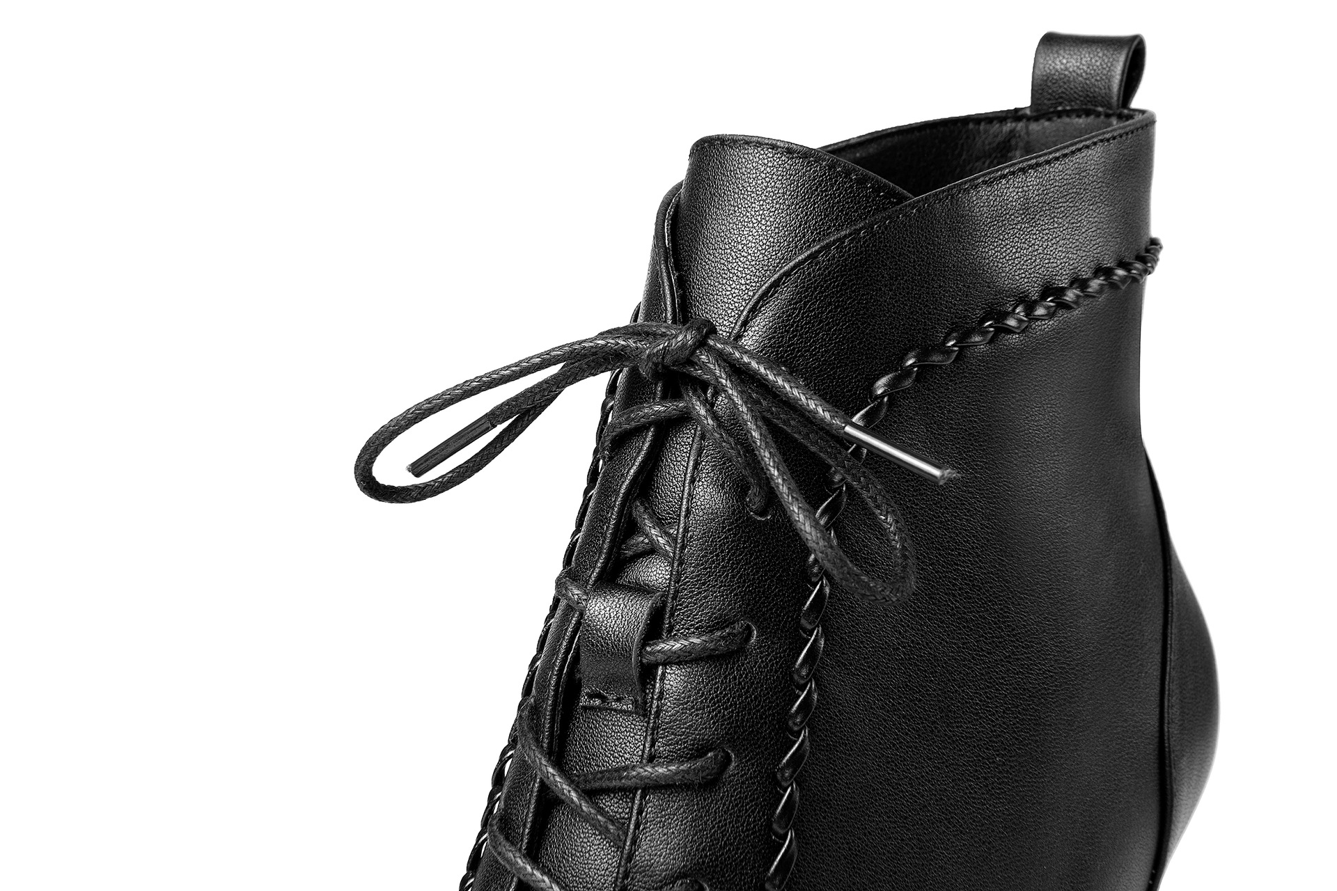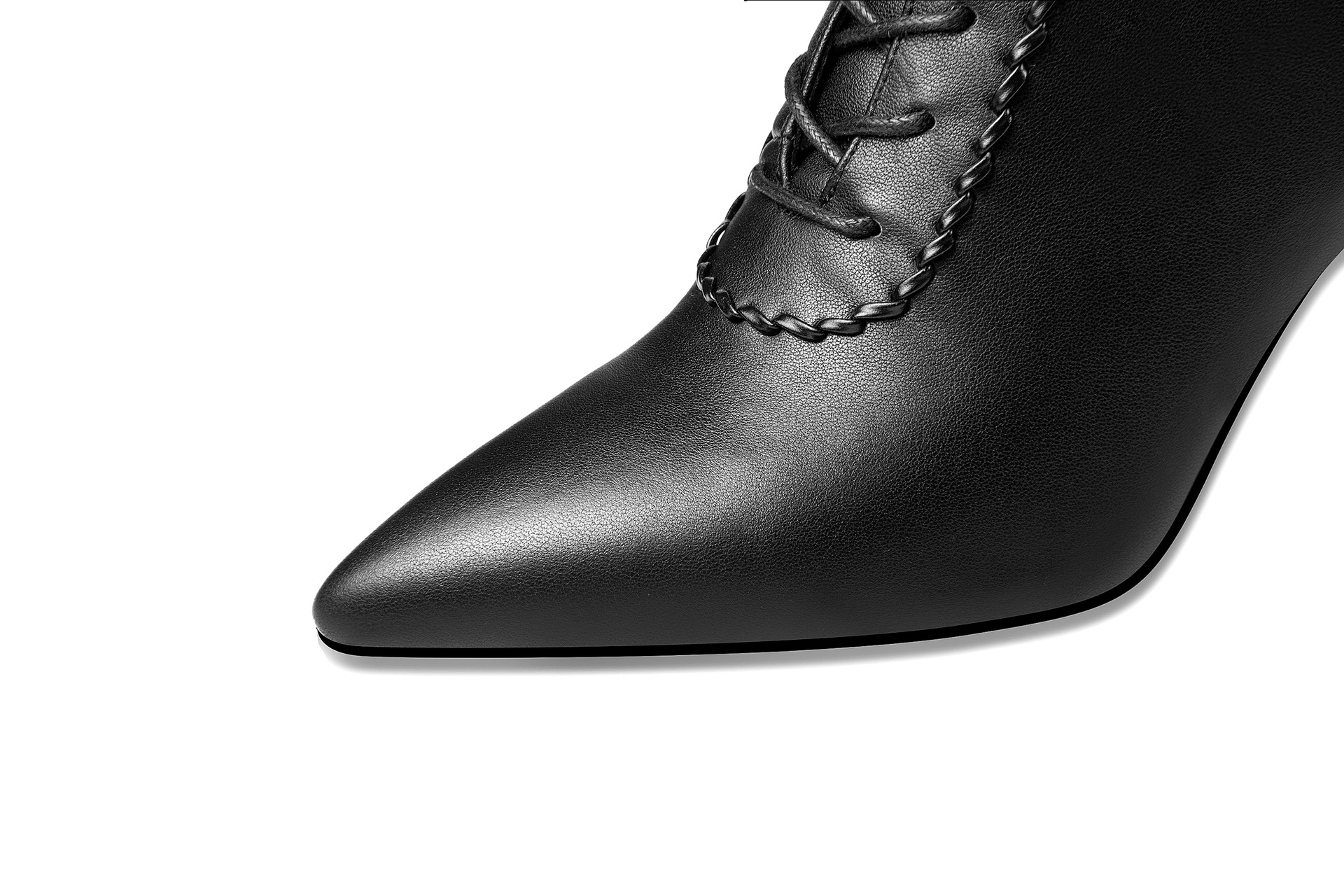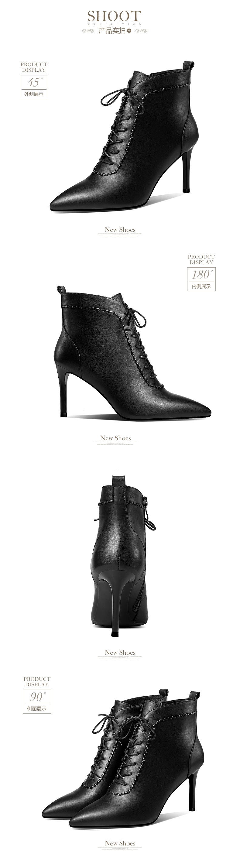 MDE-Q1951678新款真皮女靴子尖头细高跟皮靴系带时装短靴