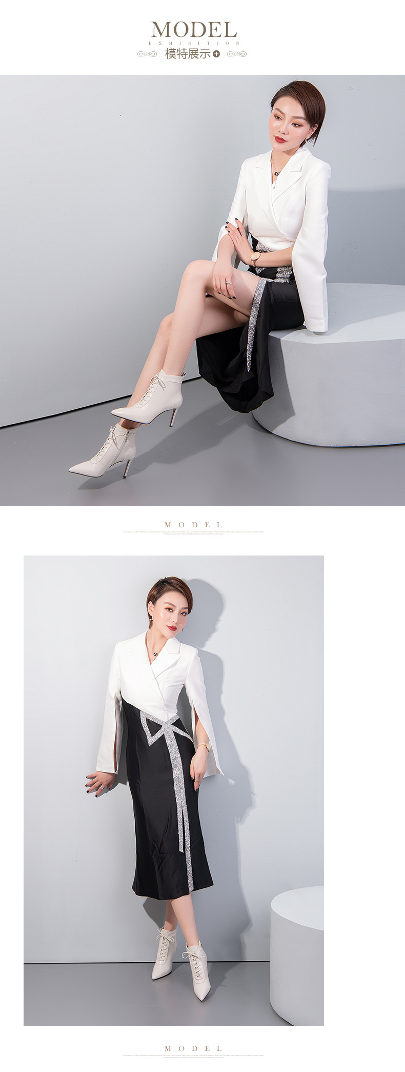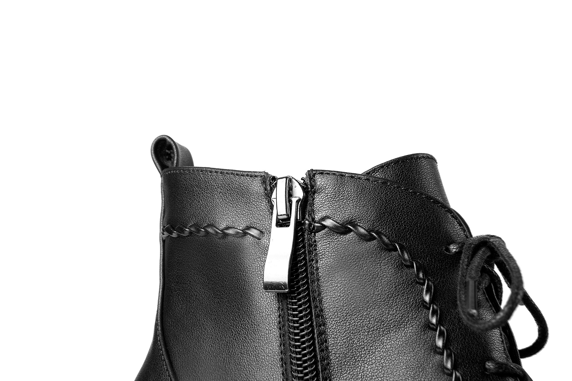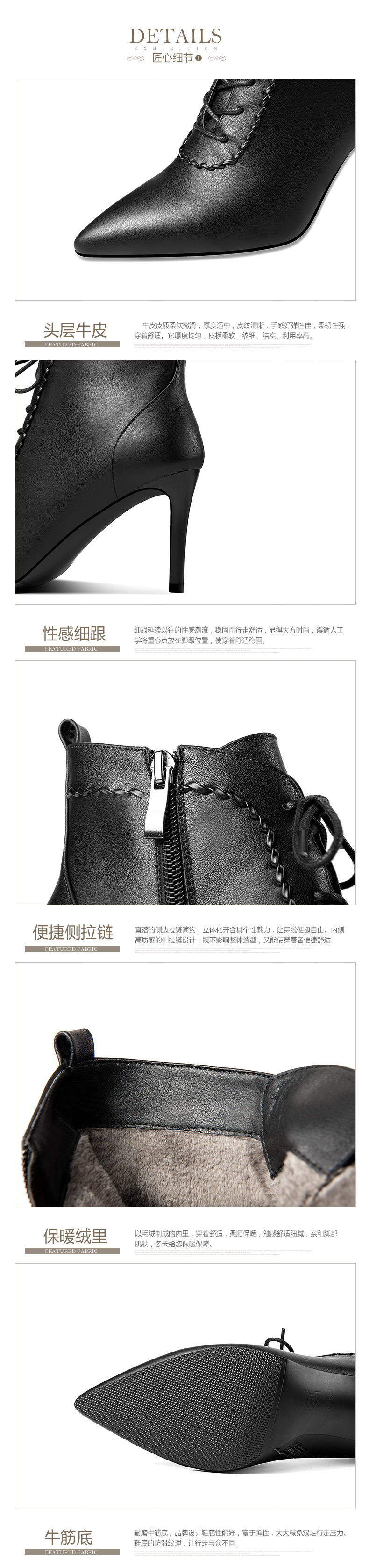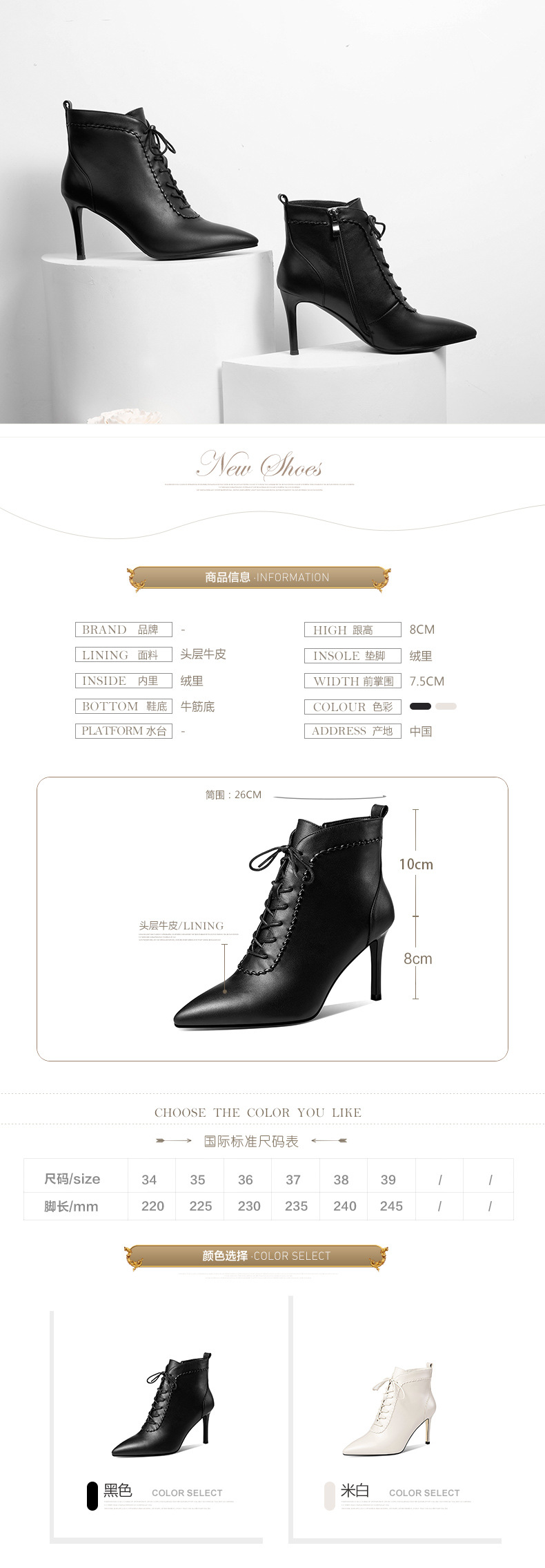 MDE-Q1951678新款真皮女靴子尖头细高跟皮靴系带时装短靴