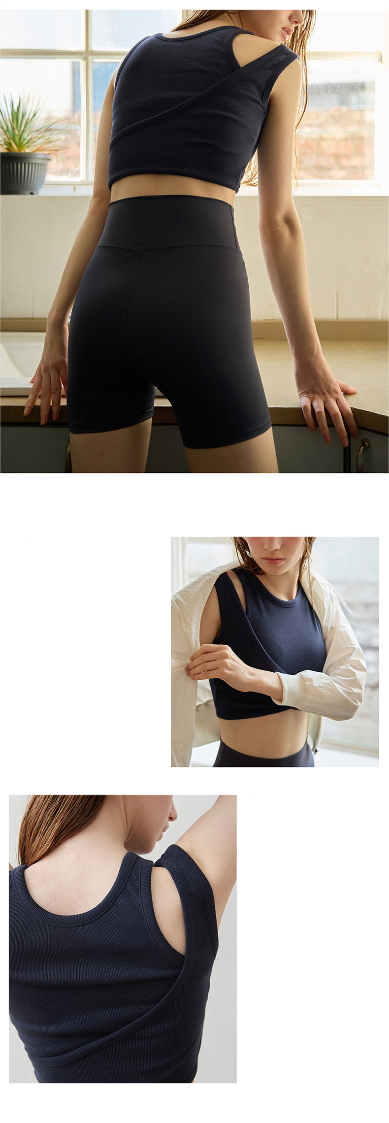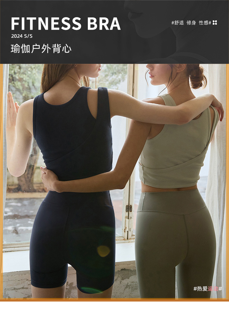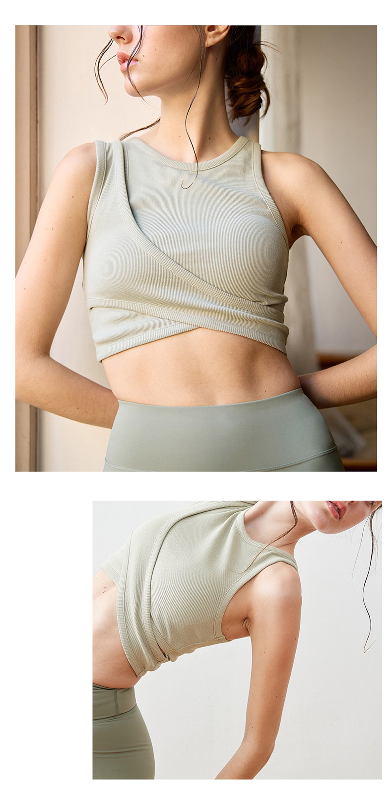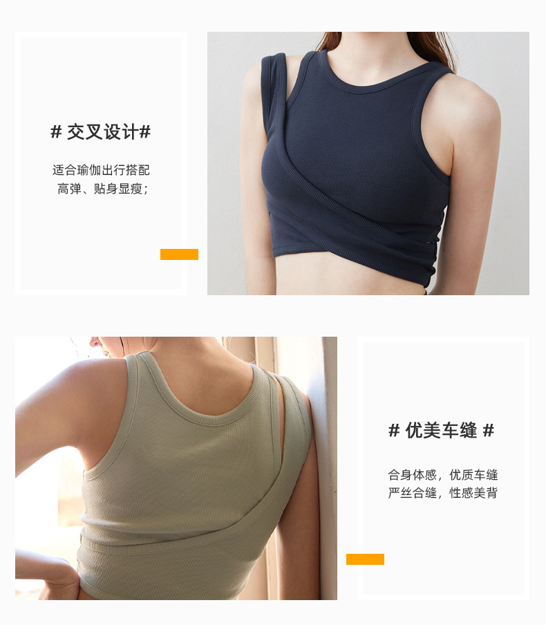 跃牌【洛水之神系列】夏季新款修身螺纹瑜伽服背心运动上衣带胸垫性感交叉宽肩背心LN34