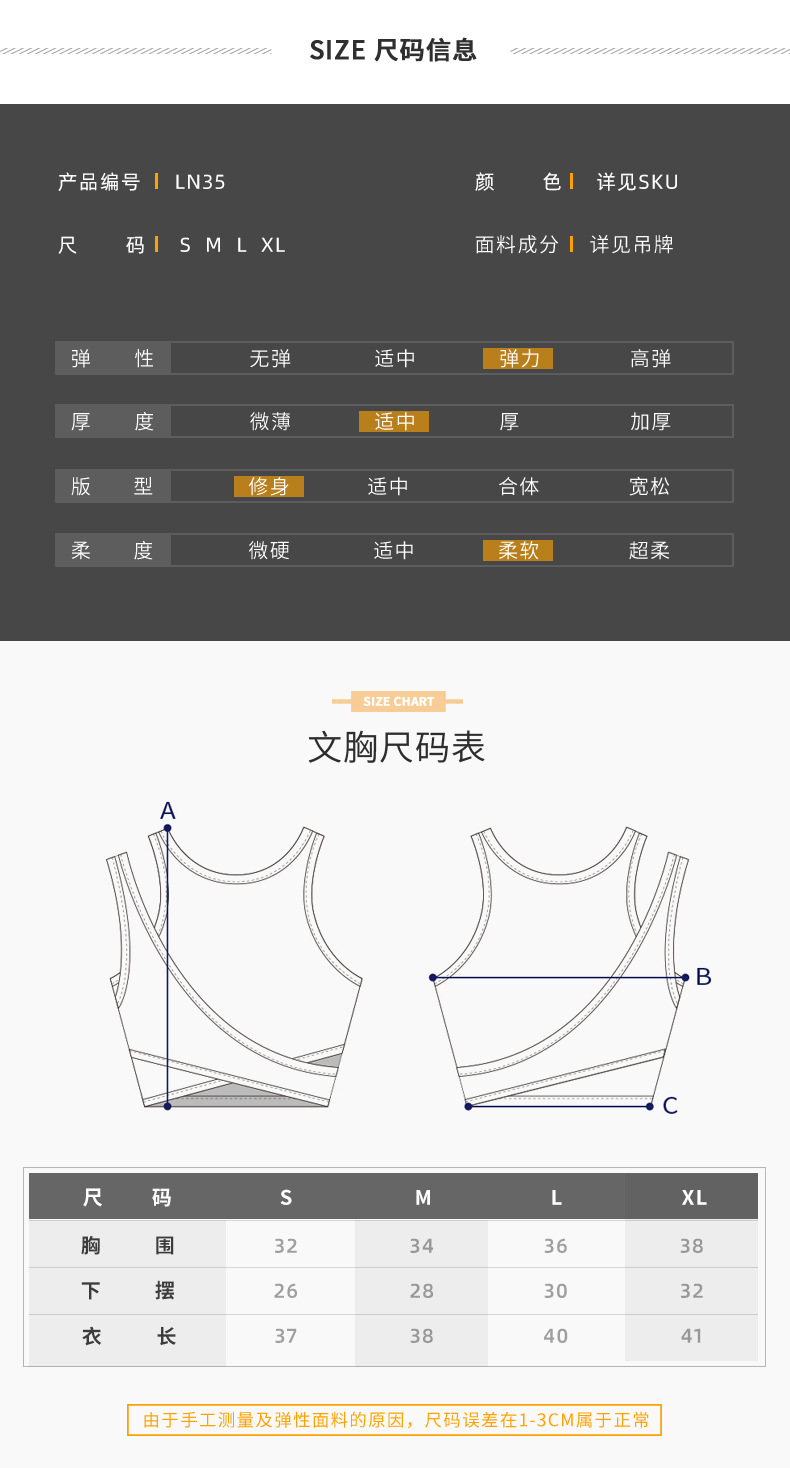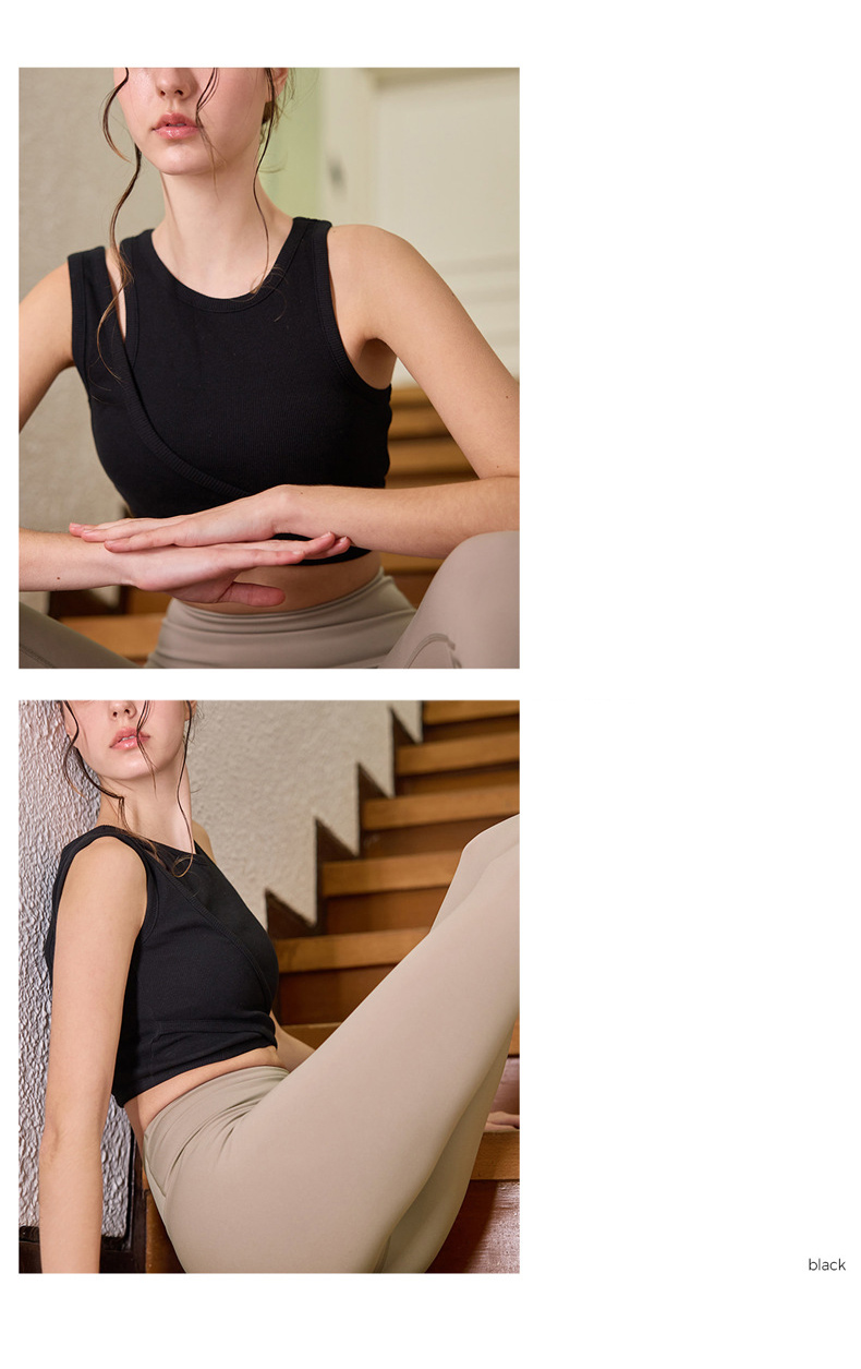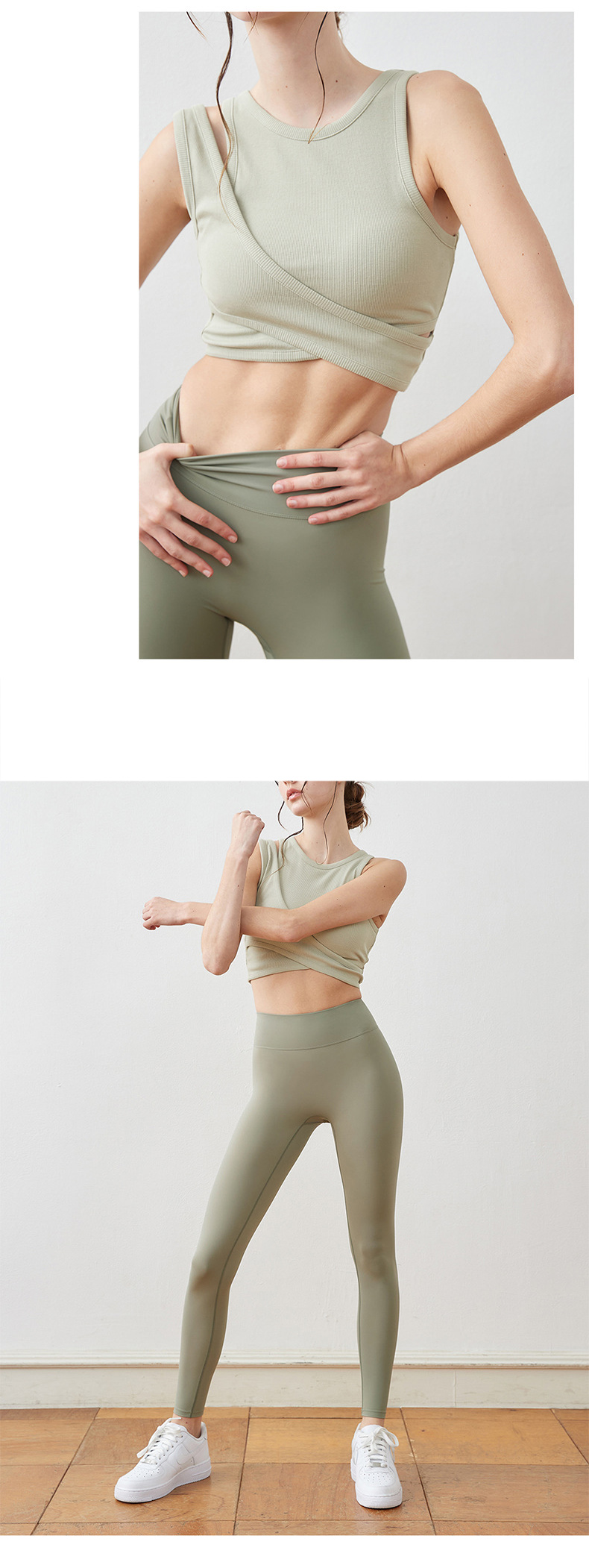 跃牌【洛水之神系列】夏季新款修身螺纹瑜伽服背心运动上衣带胸垫性感交叉宽肩背心LN34