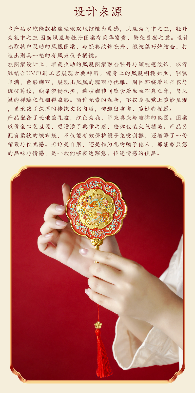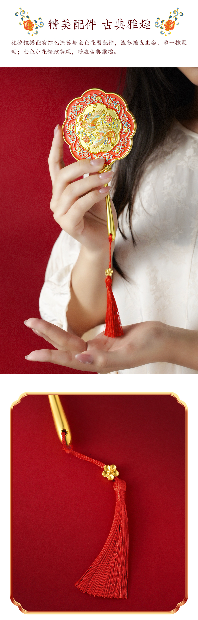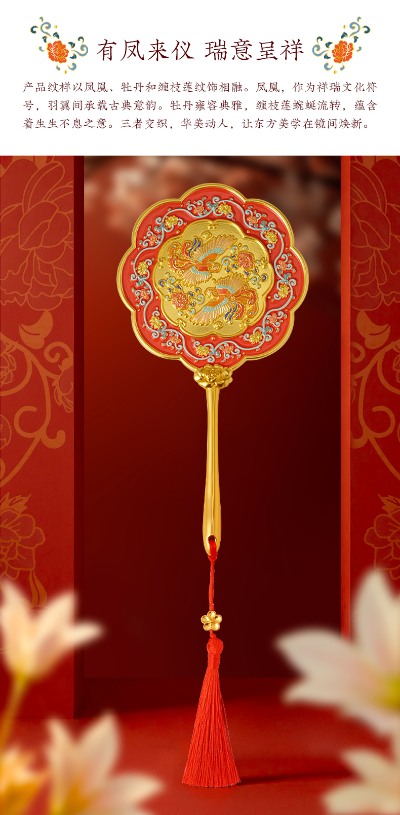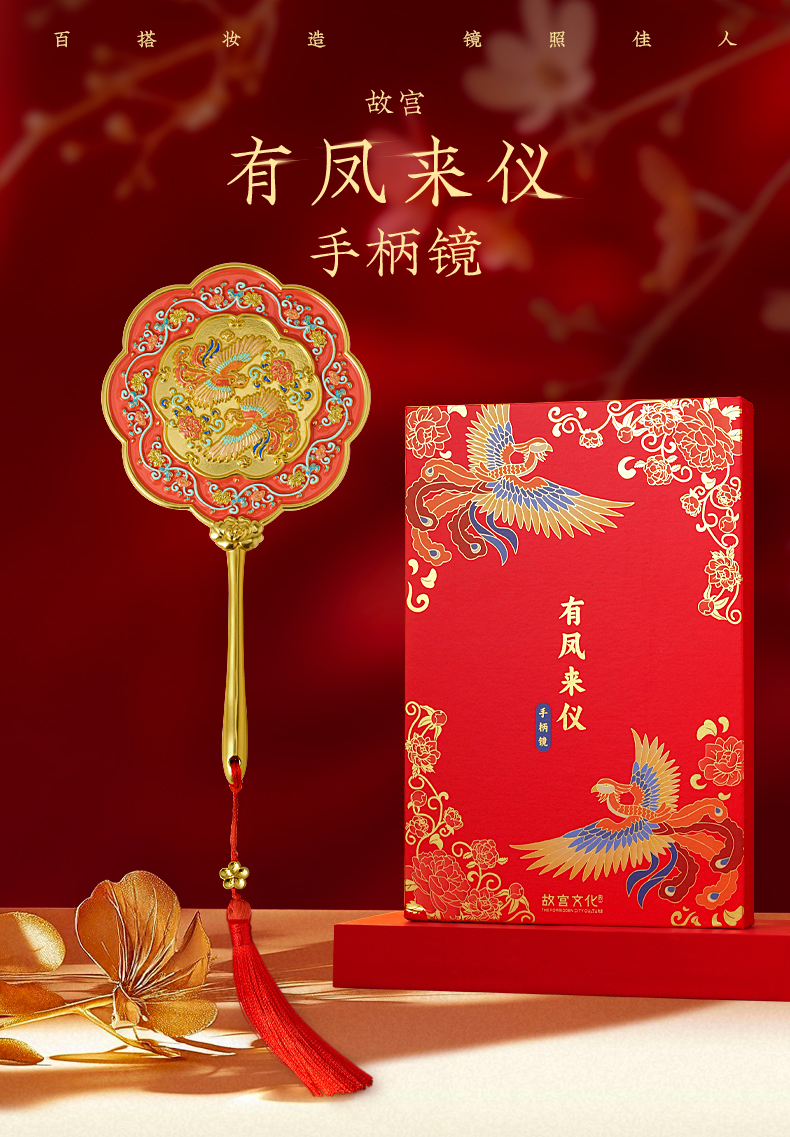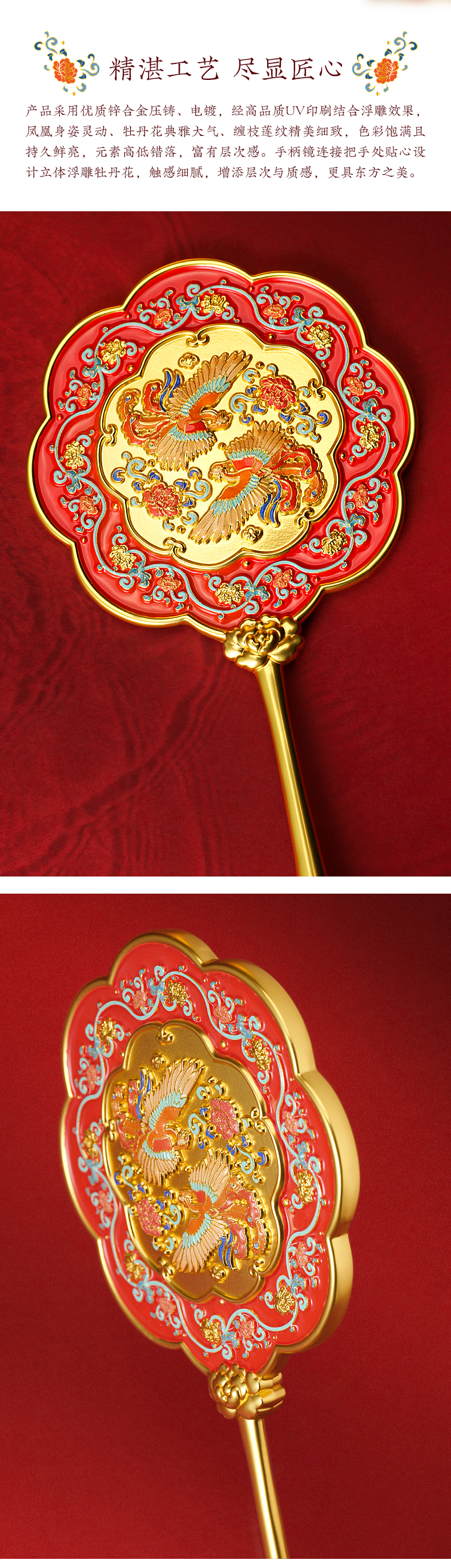 有凤来仪手柄镜 化妆镜
