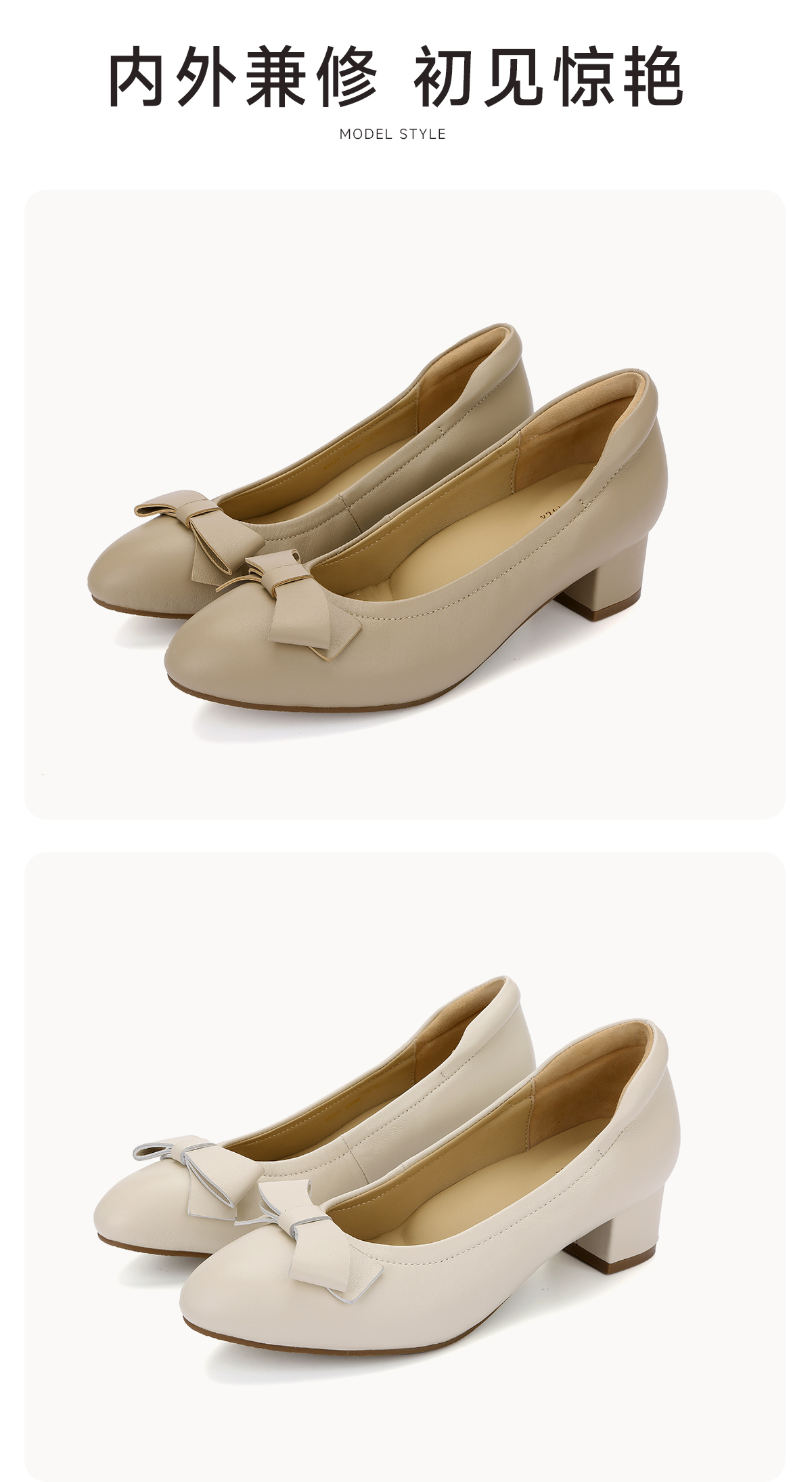 蝴蝶结粗跟浅口鞋 | ARCH CONTACT安启美奈 百搭通勤不累脚女单鞋53121