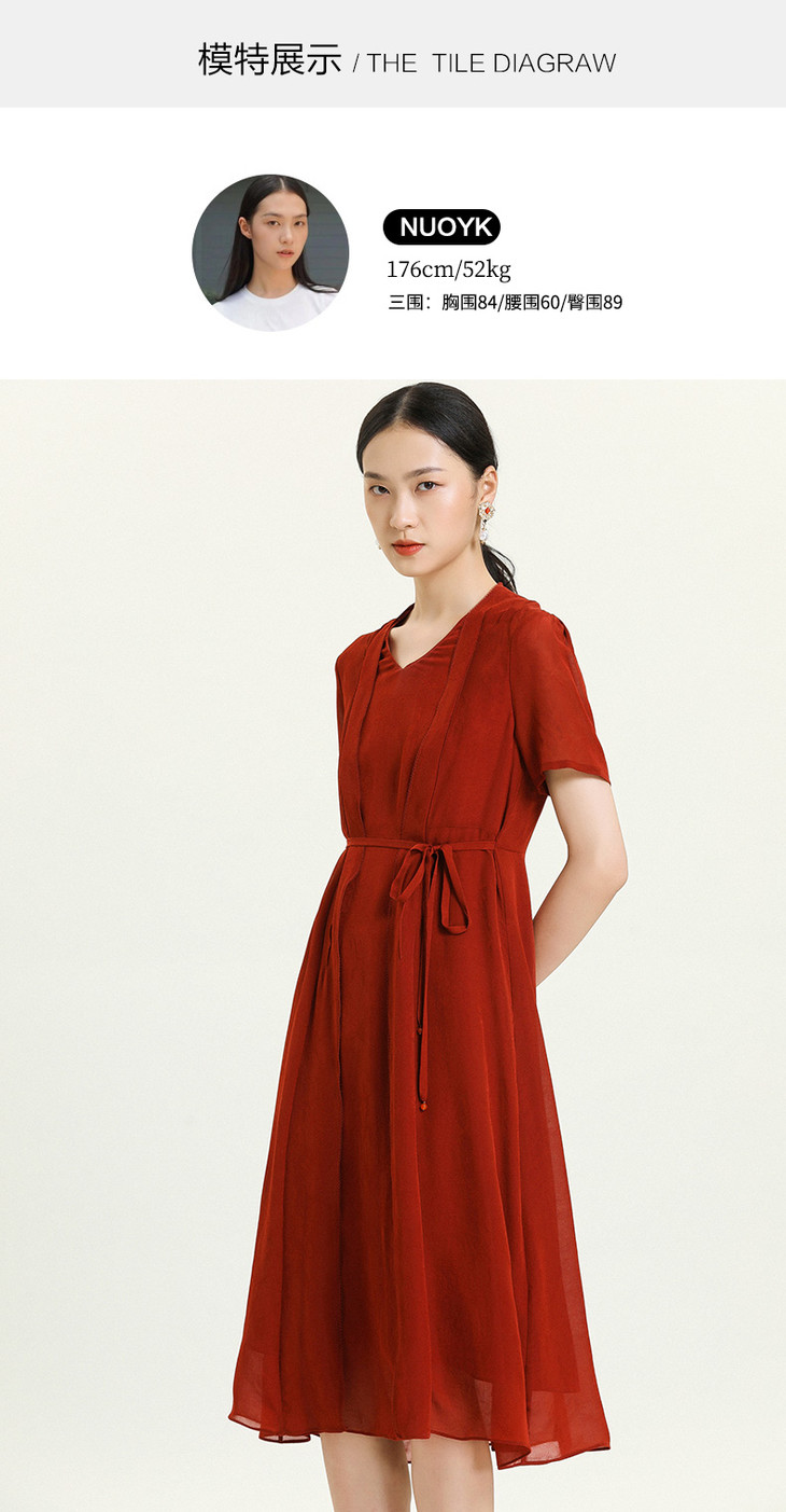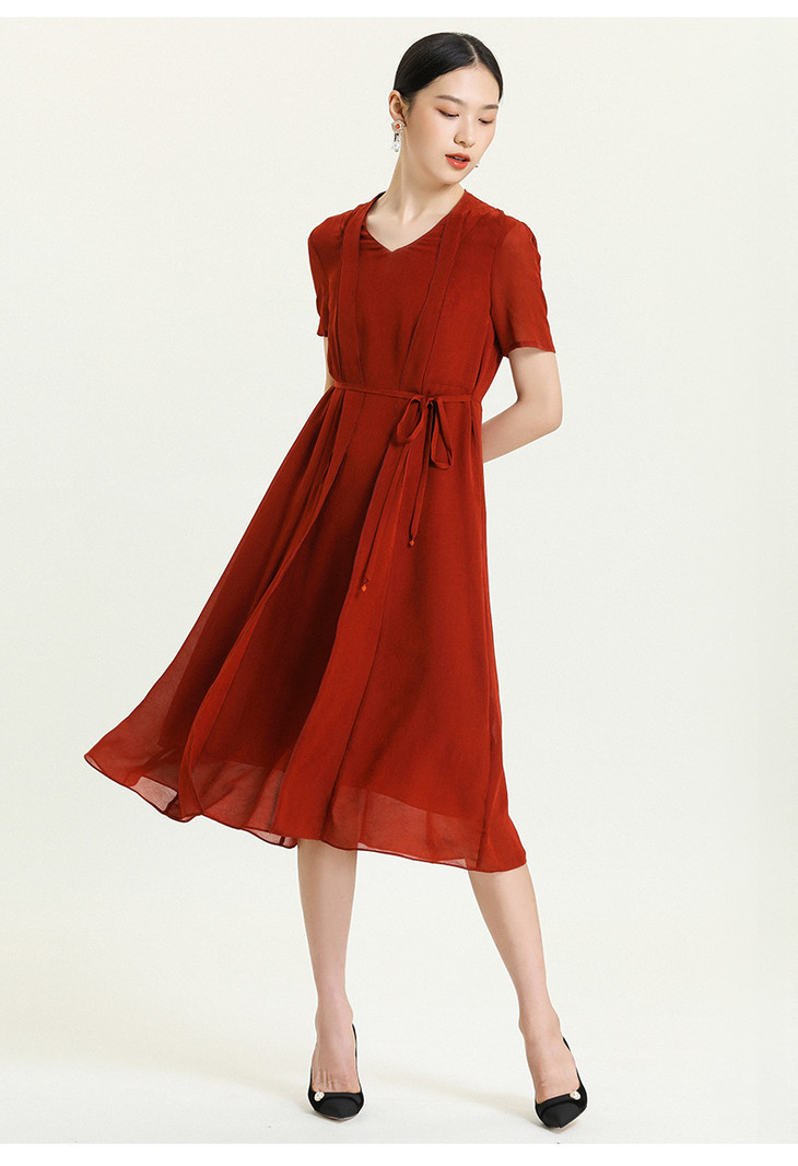 乔万尼V领真丝提花乔其连衣裙夏季v领收腰气质中长裙ES2E158