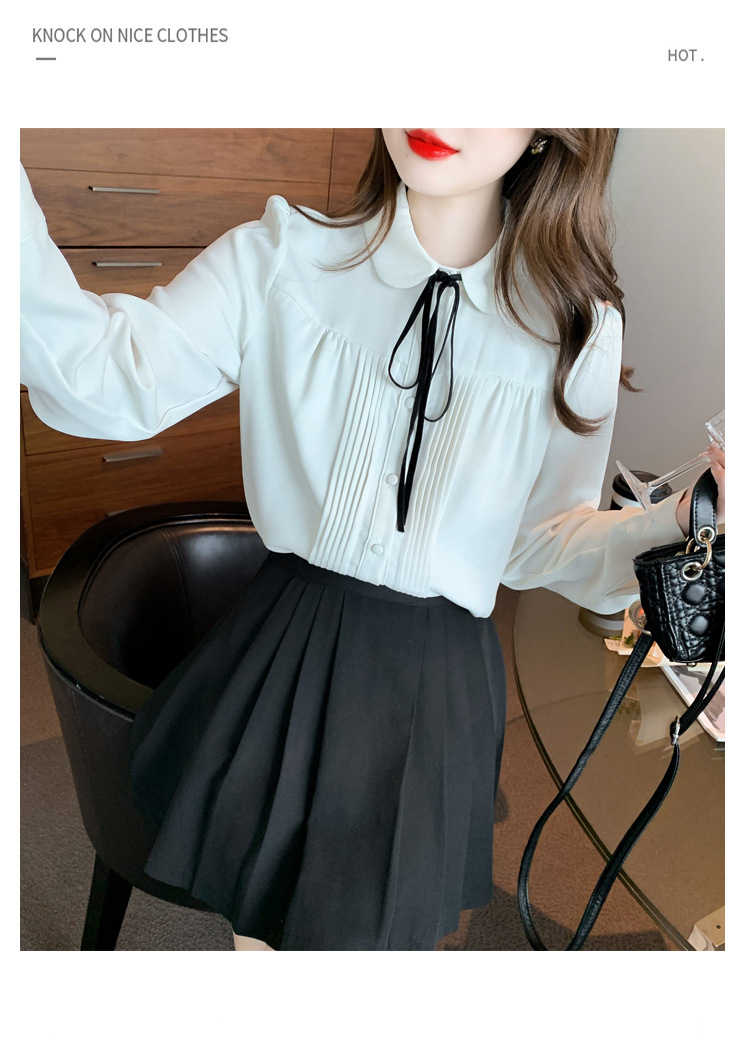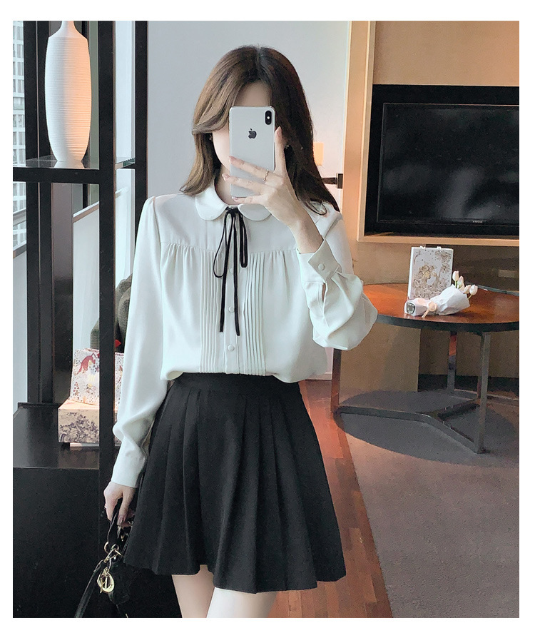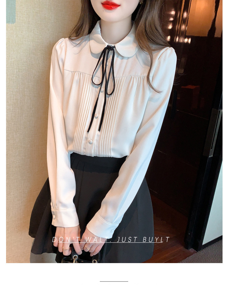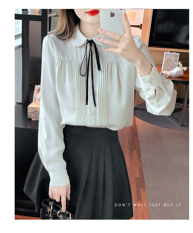 法式通勤娃娃领衬衫,秋装新款蝴蝶结雪纺衫上衣AYL-3051