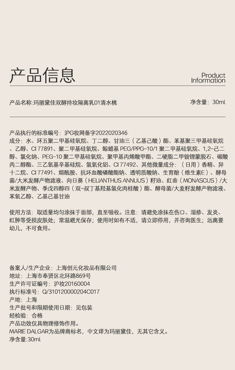 【积分兑换正装】双酵持妆隔离乳长效持色清爽 持久01清水桃