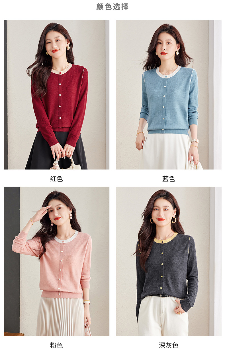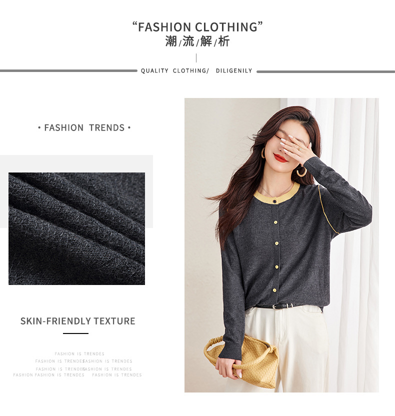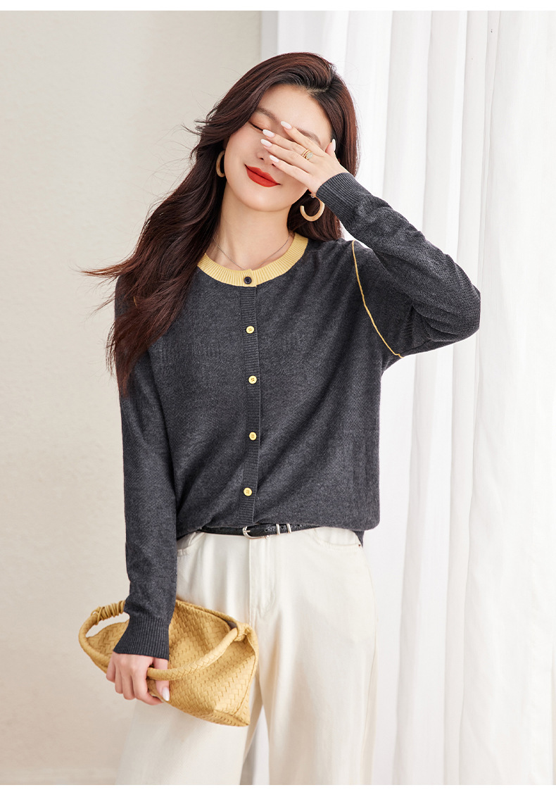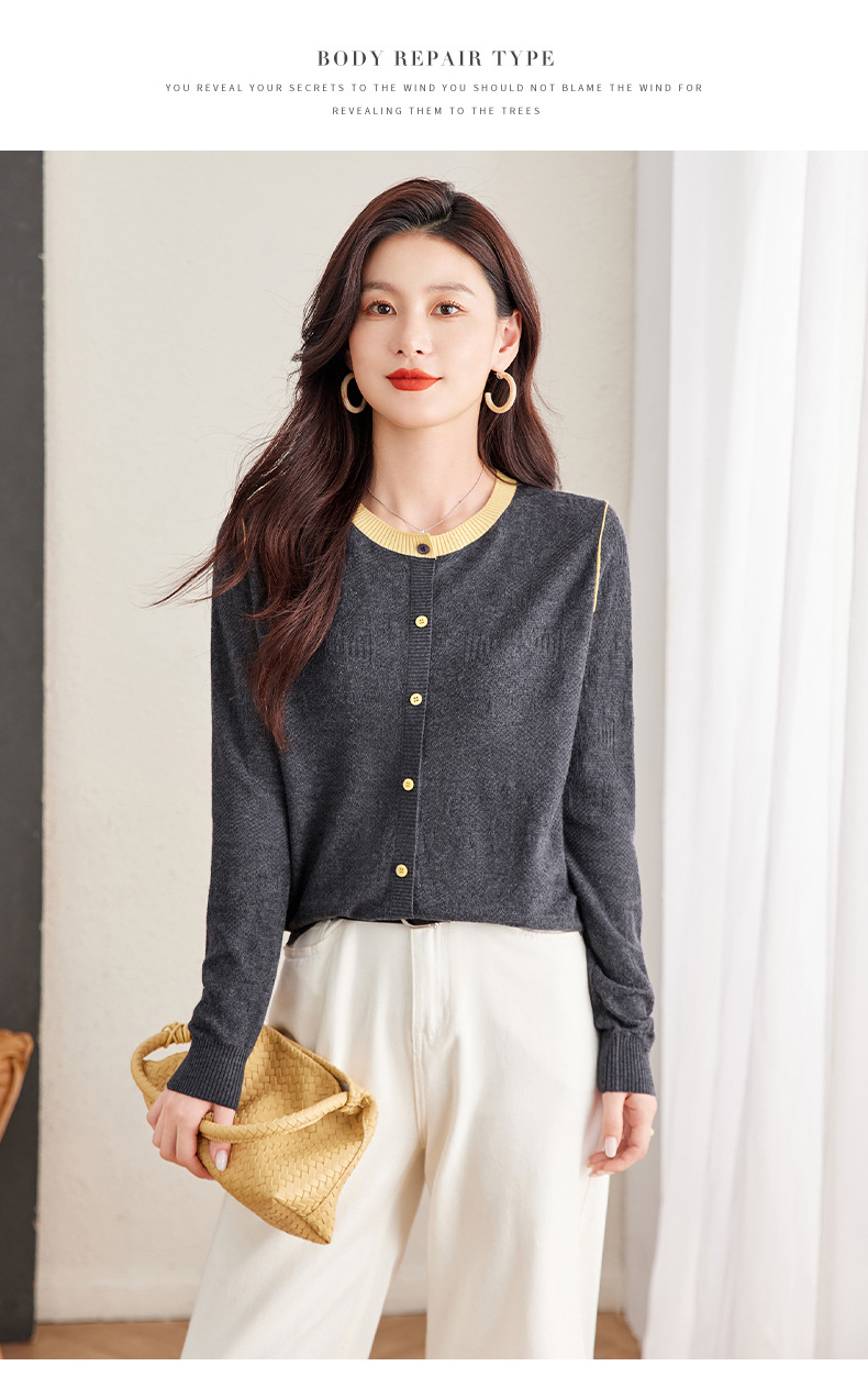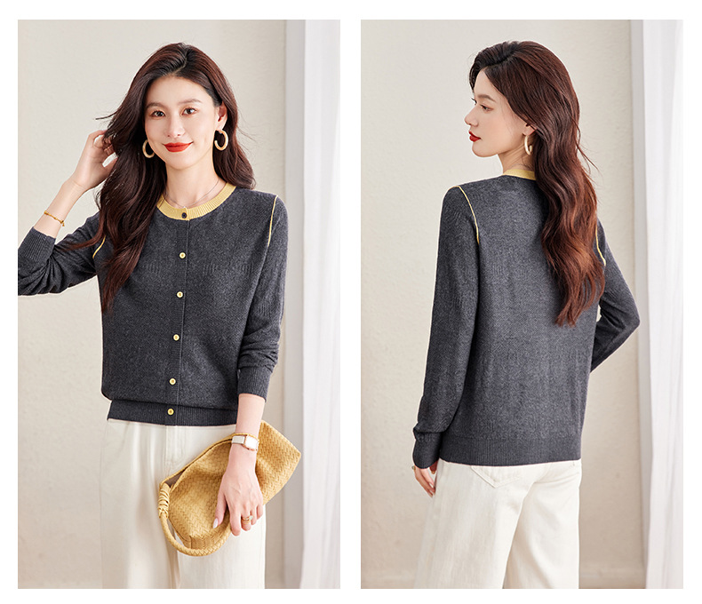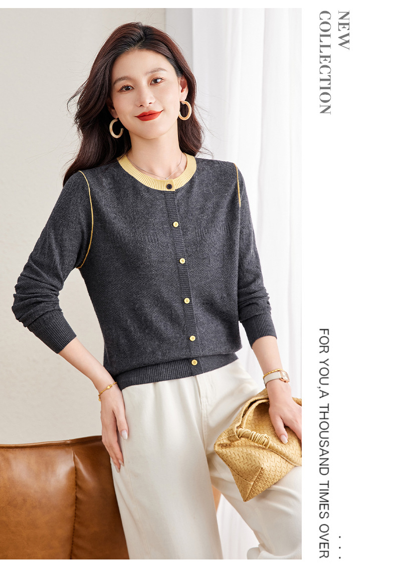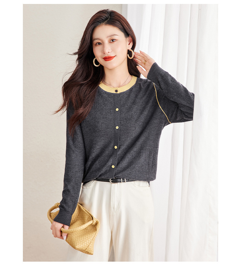 圆领拼色针织衫,洋气减龄小个子休闲毛衣打底上衣CC-16-9511