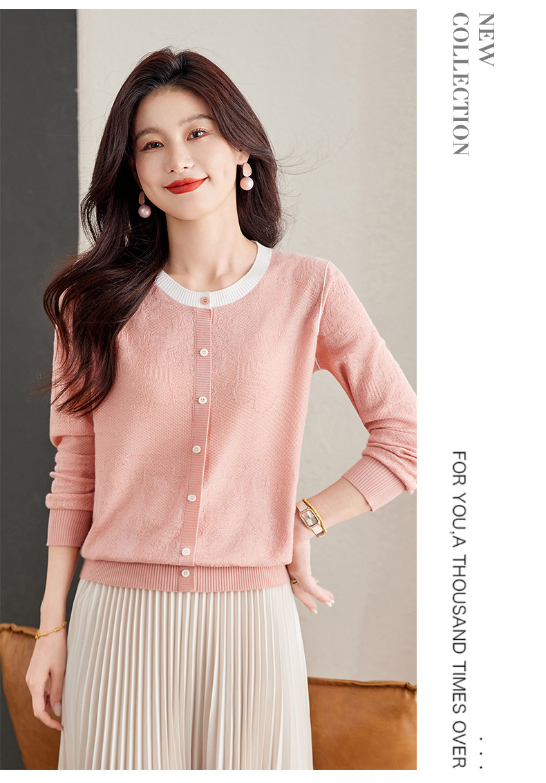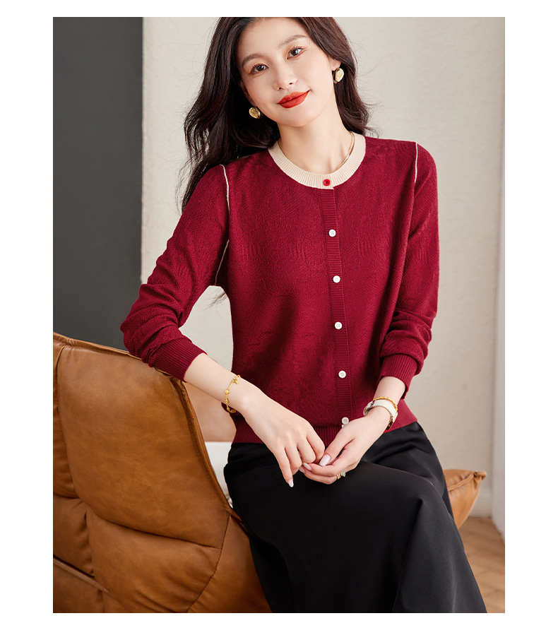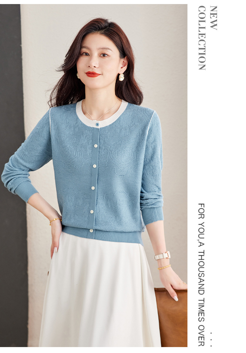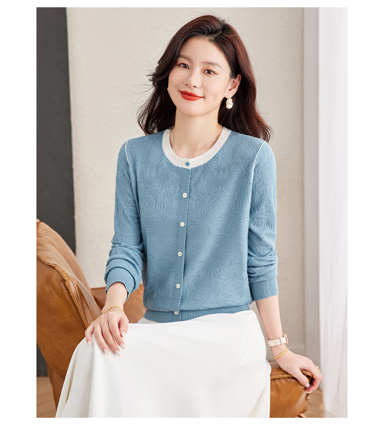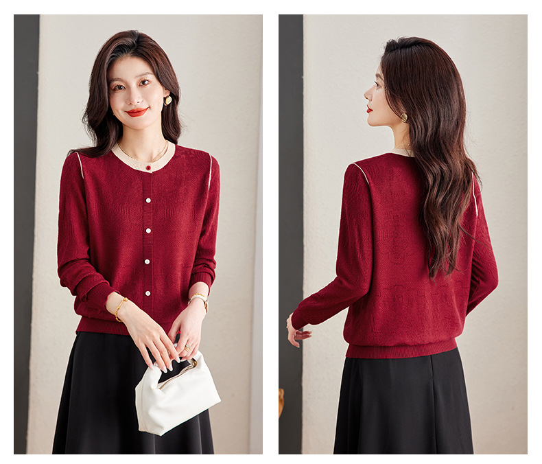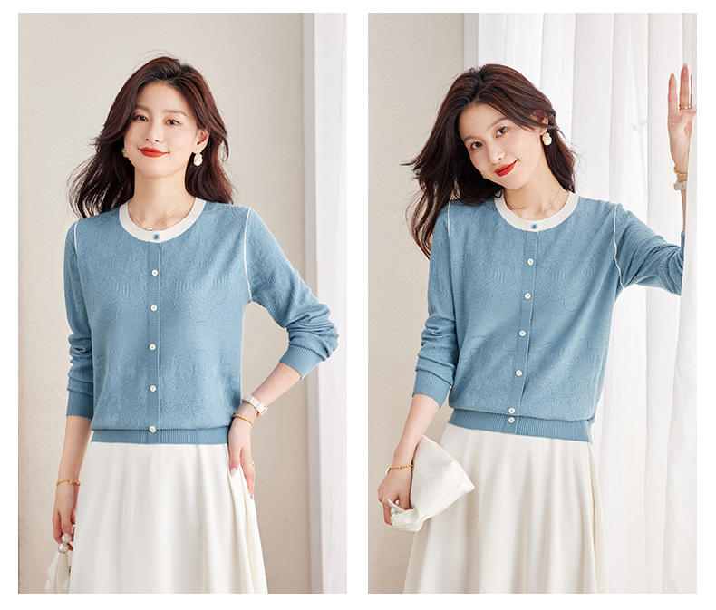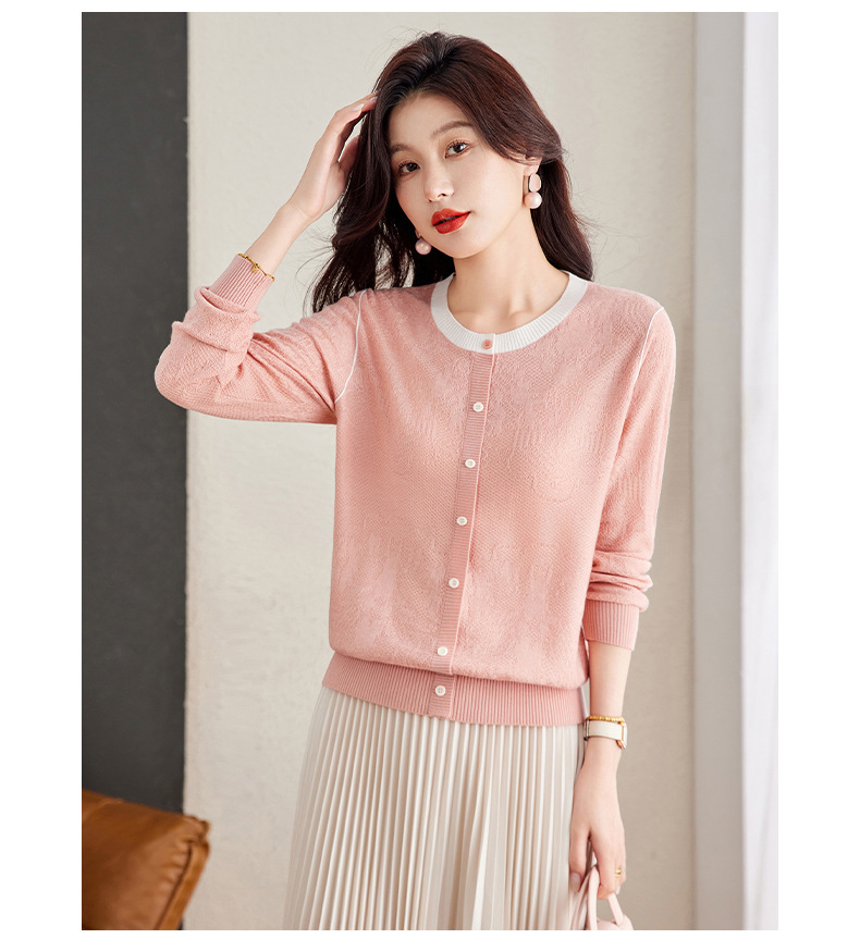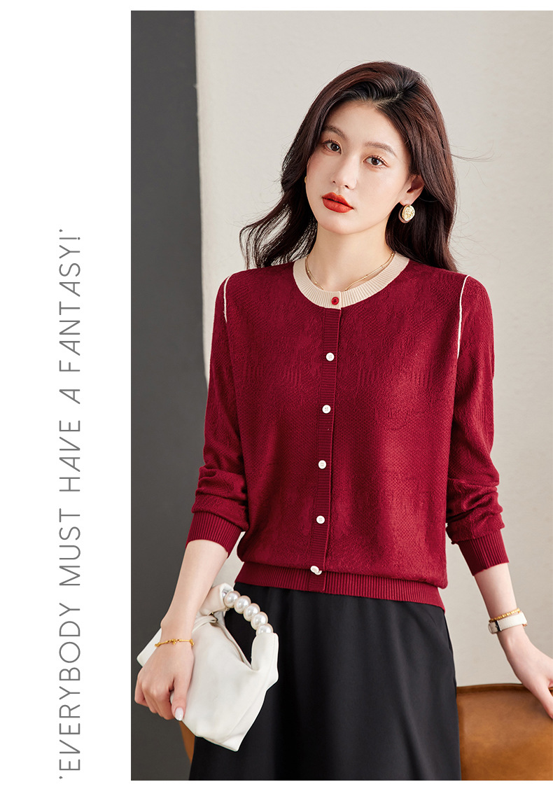 圆领拼色针织衫,洋气减龄小个子休闲毛衣打底上衣CC-16-9511