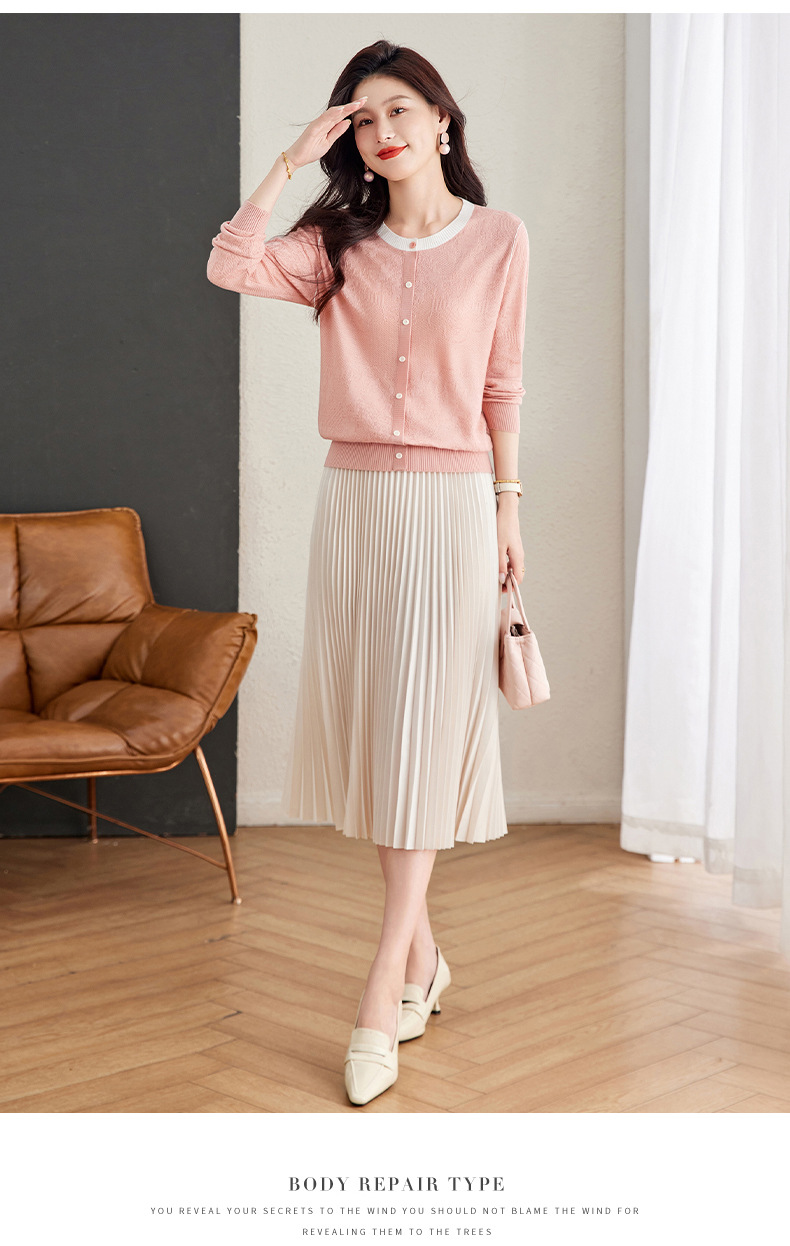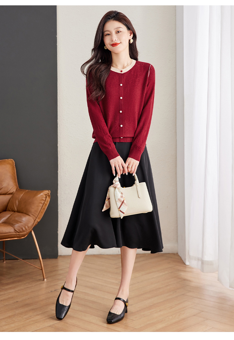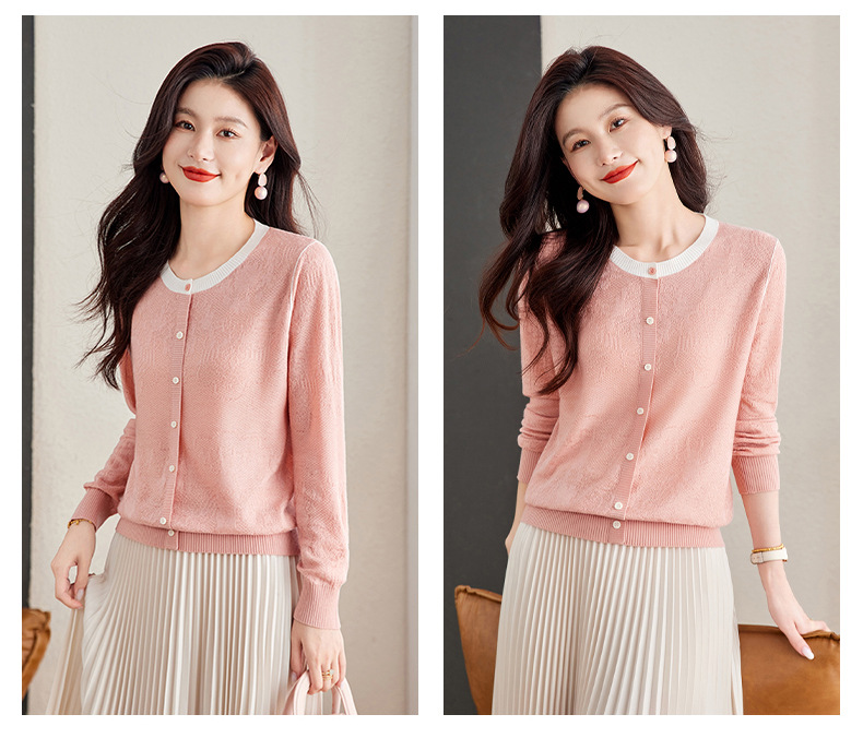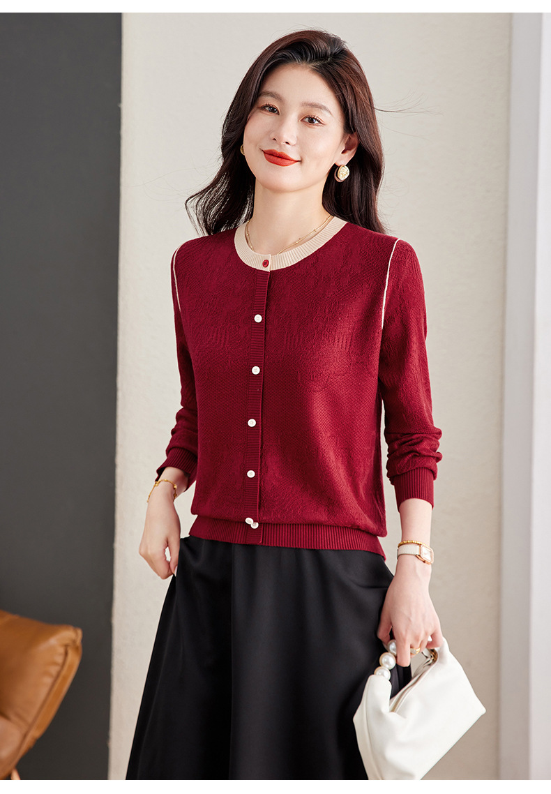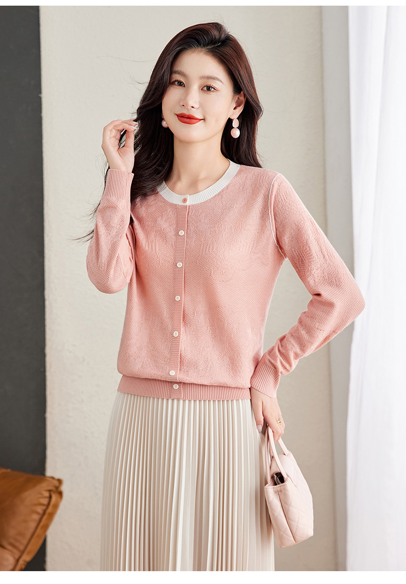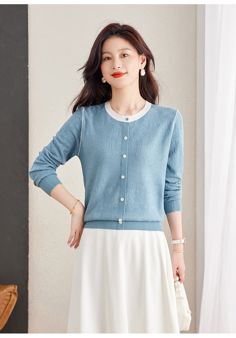 圆领拼色针织衫,洋气减龄小个子休闲毛衣打底上衣CC-16-9511