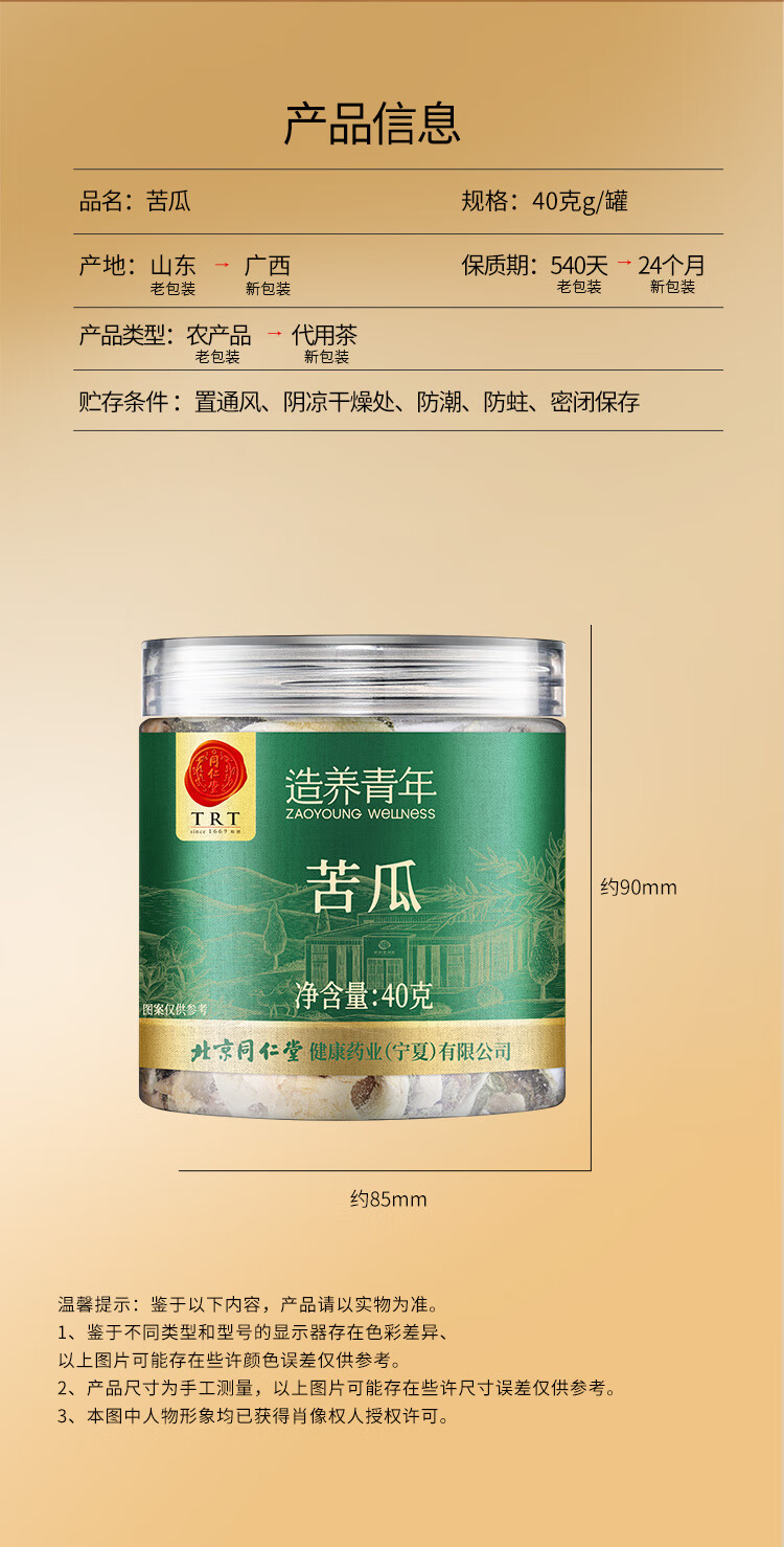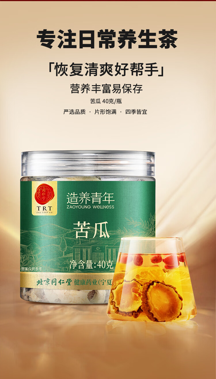 【正宗同仁堂品牌】北京同仁堂 苦瓜片 直径2-3cm 40克装 片形饱满 回味清爽 苦中带甜SY