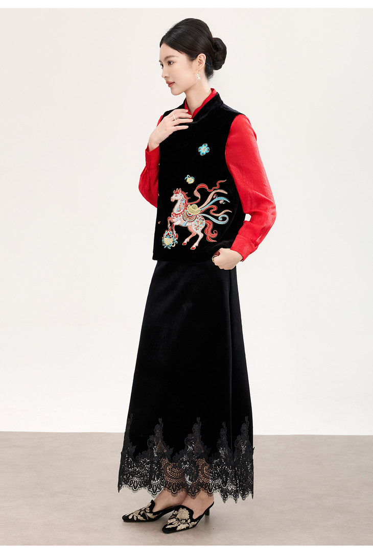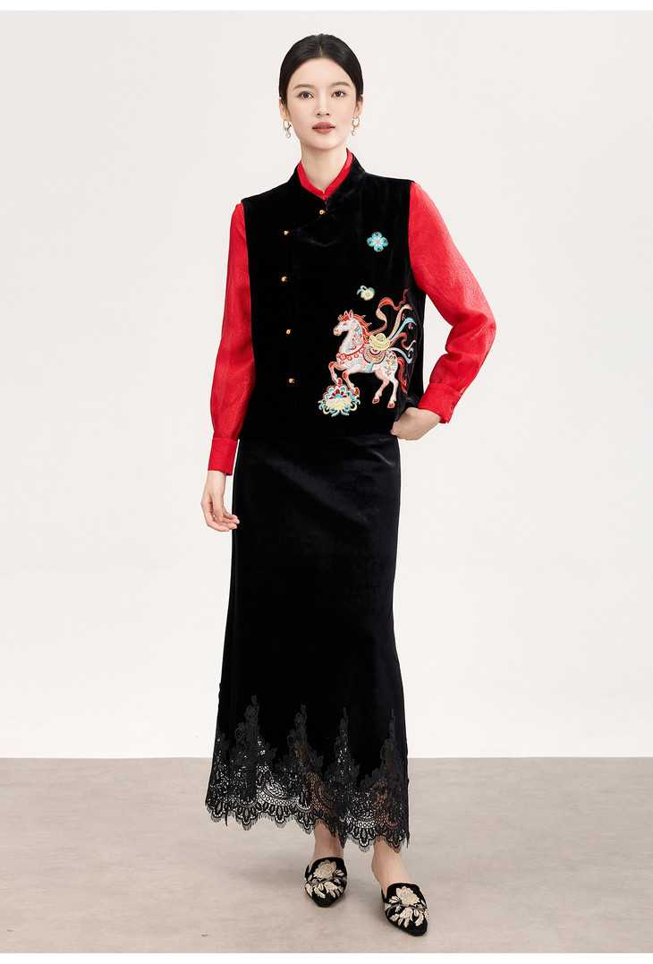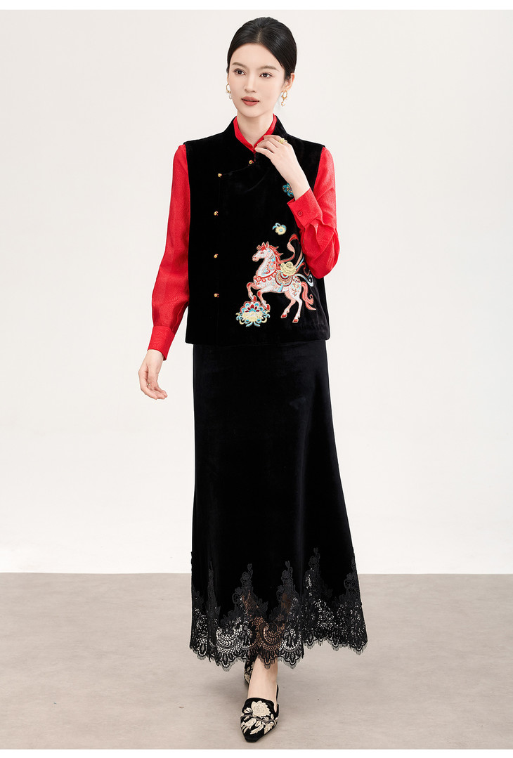 春款新品新中式真丝丝绒马上有钱刺绣马甲WLZD2601301 商品图1