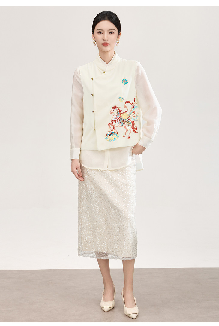春款新品新中式真丝丝绒马上有钱刺绣马甲WLZD2601301 商品图4
