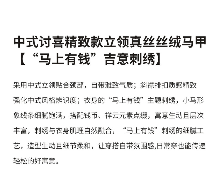 春款新品新中式真丝丝绒马上有钱刺绣马甲WLZD2601301 商品缩略图0 春款新品新中式真丝丝绒马上有钱刺绣马甲WLZD2601301 商品缩略图1 春款新品新中式真丝丝绒马上有钱刺绣马甲WLZD2601301 商品缩略图2 春款新品新中式真丝丝绒马上有钱刺绣马甲WLZD2601301 商品缩略图3 春款新品新中式真丝丝绒马上有钱刺绣马甲WLZD2601301 商品缩略图4