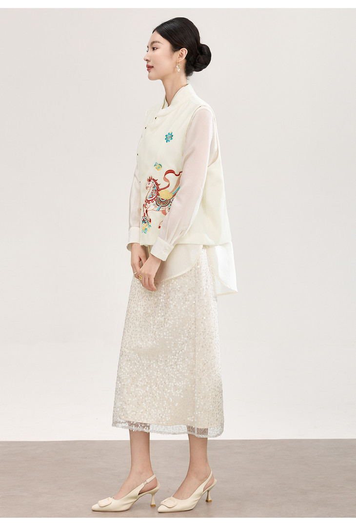 春款新品新中式真丝丝绒马上有钱刺绣马甲WLZD2601301 商品图3