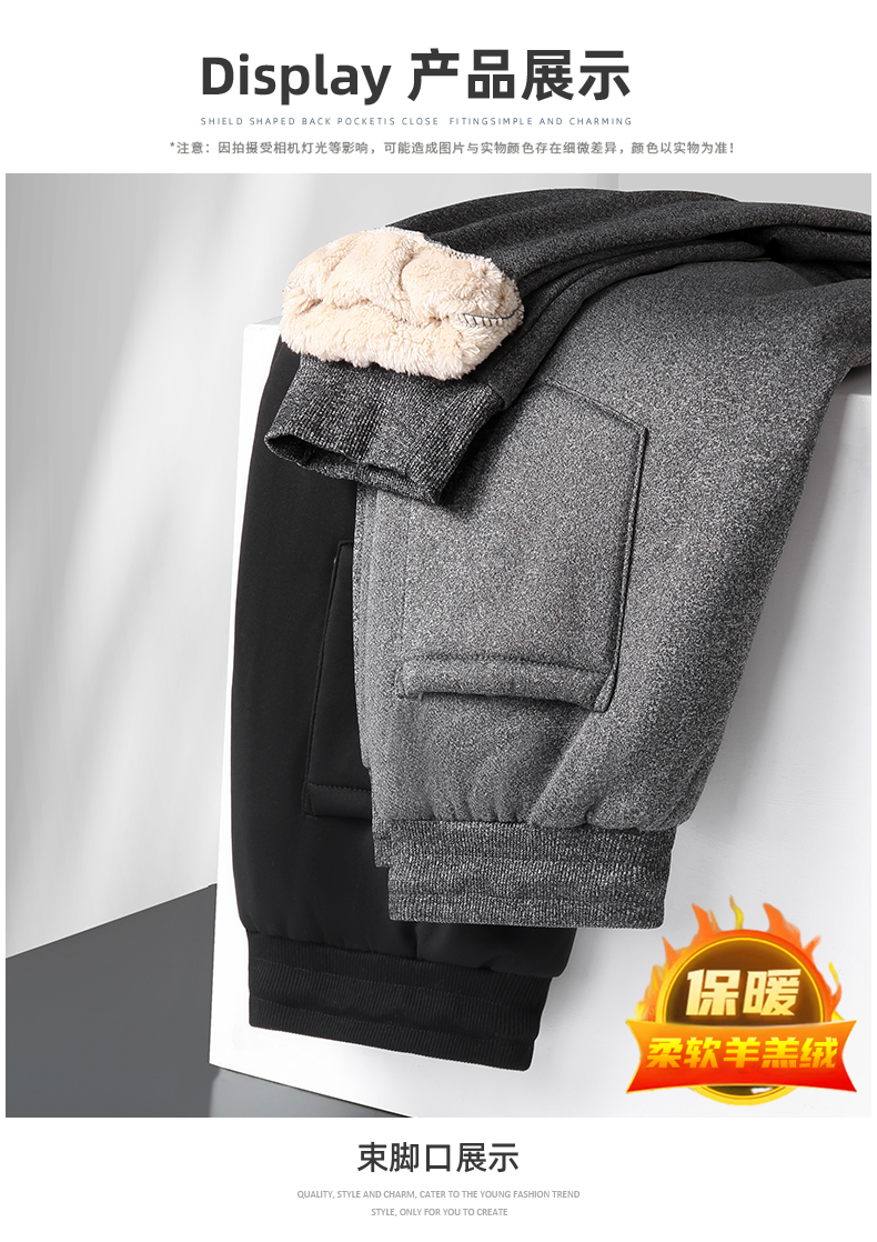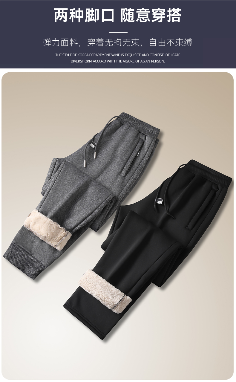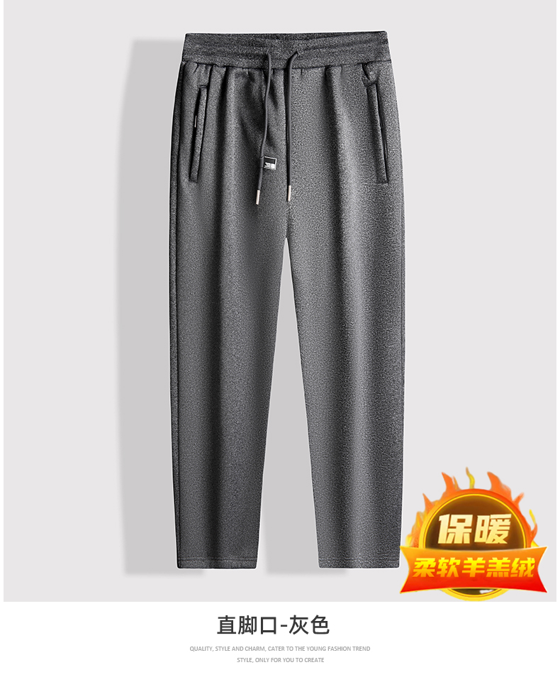 【羊羔绒】【新款DK】大依优型大码男装加绒直口束口直筒运动裤运动休闲长裤加肥加大弹力舒适