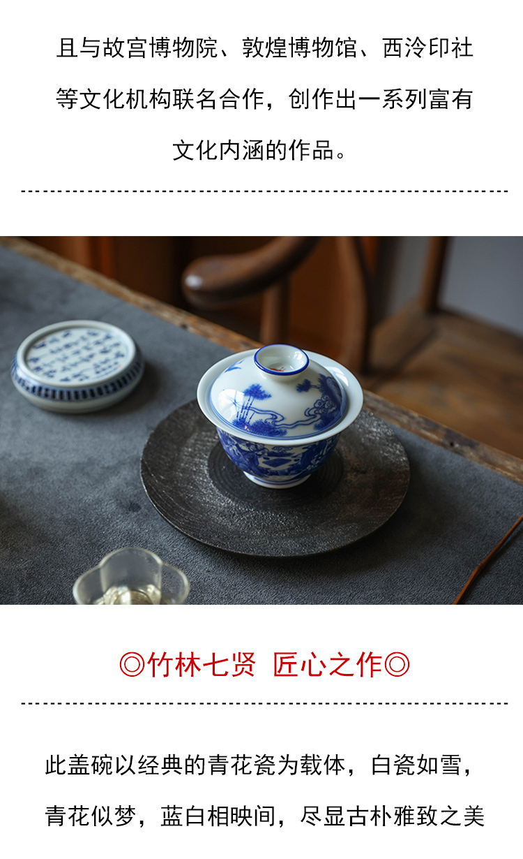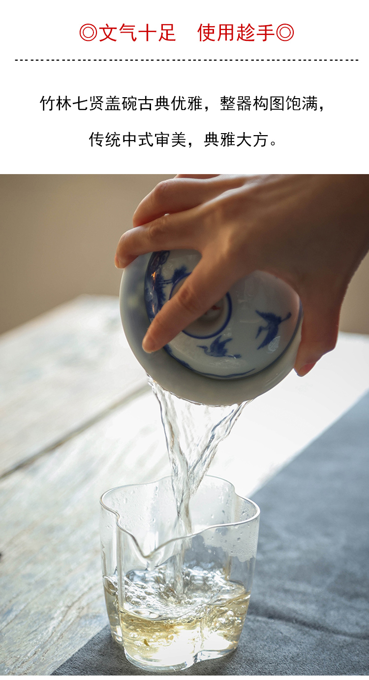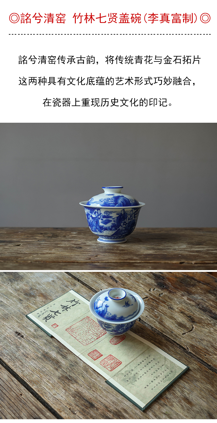 茶香记 詺兮清窑竹林七贤盖碗(李真富制) 150ml景德镇陶瓷泡茶碗