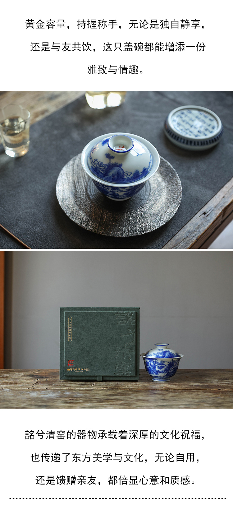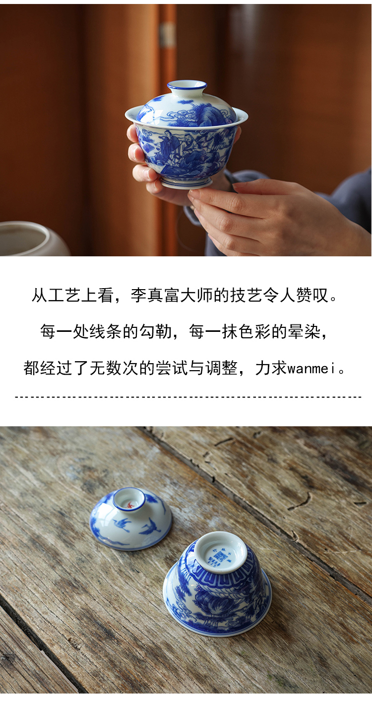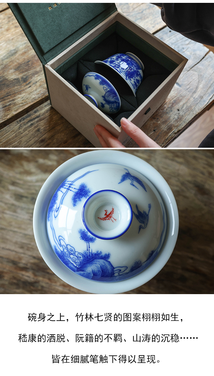 茶香记 詺兮清窑竹林七贤盖碗(李真富制) 150ml景德镇陶瓷泡茶碗