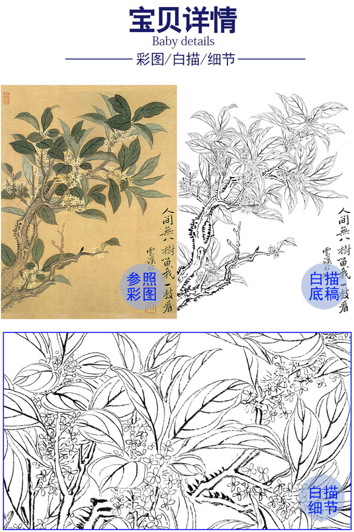任重花鸟工笔画白描底稿《花鸟图》临摹勾线高清打印稿RD44