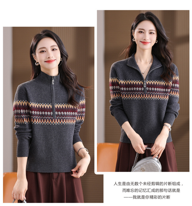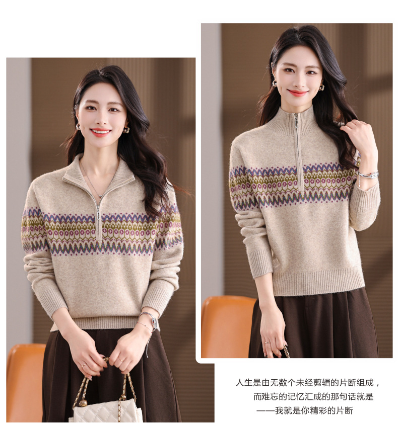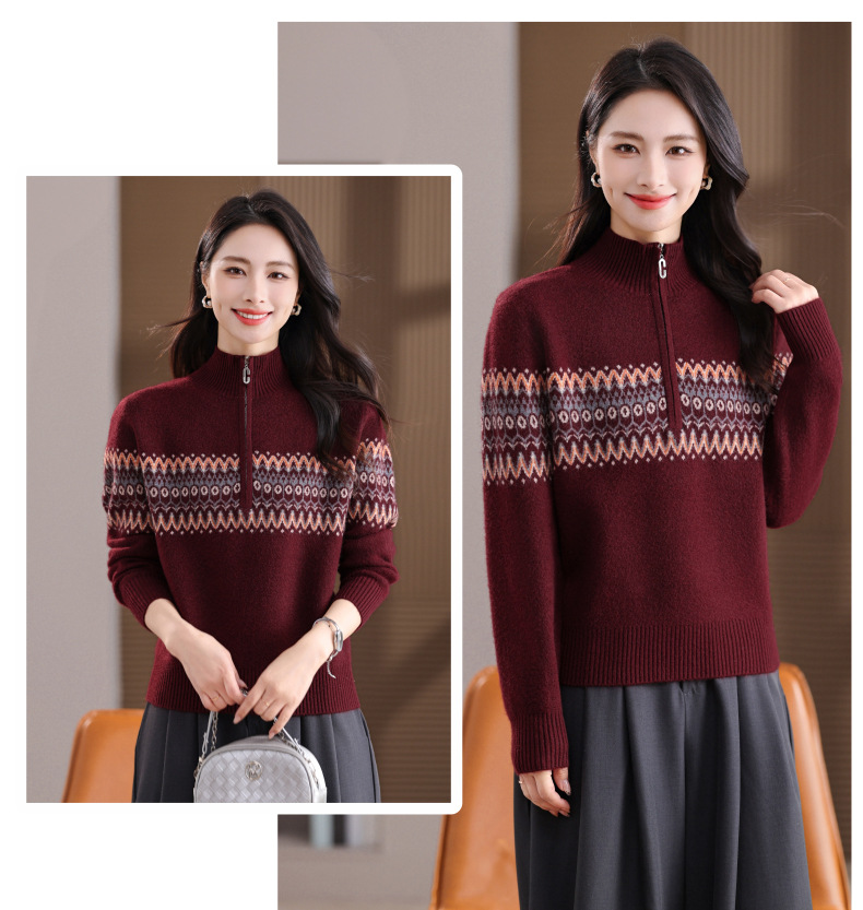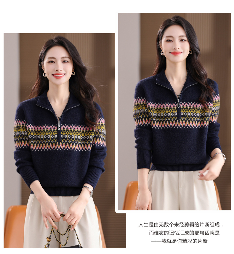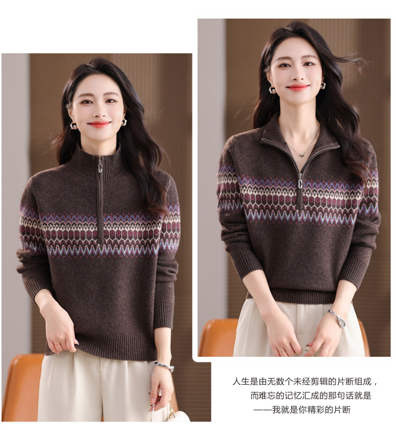CC 35539半高领拉链打底衫减龄洋气提花保暖针织衫上衣