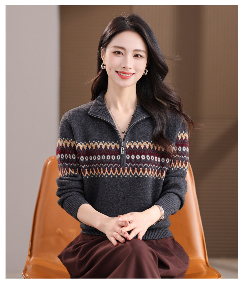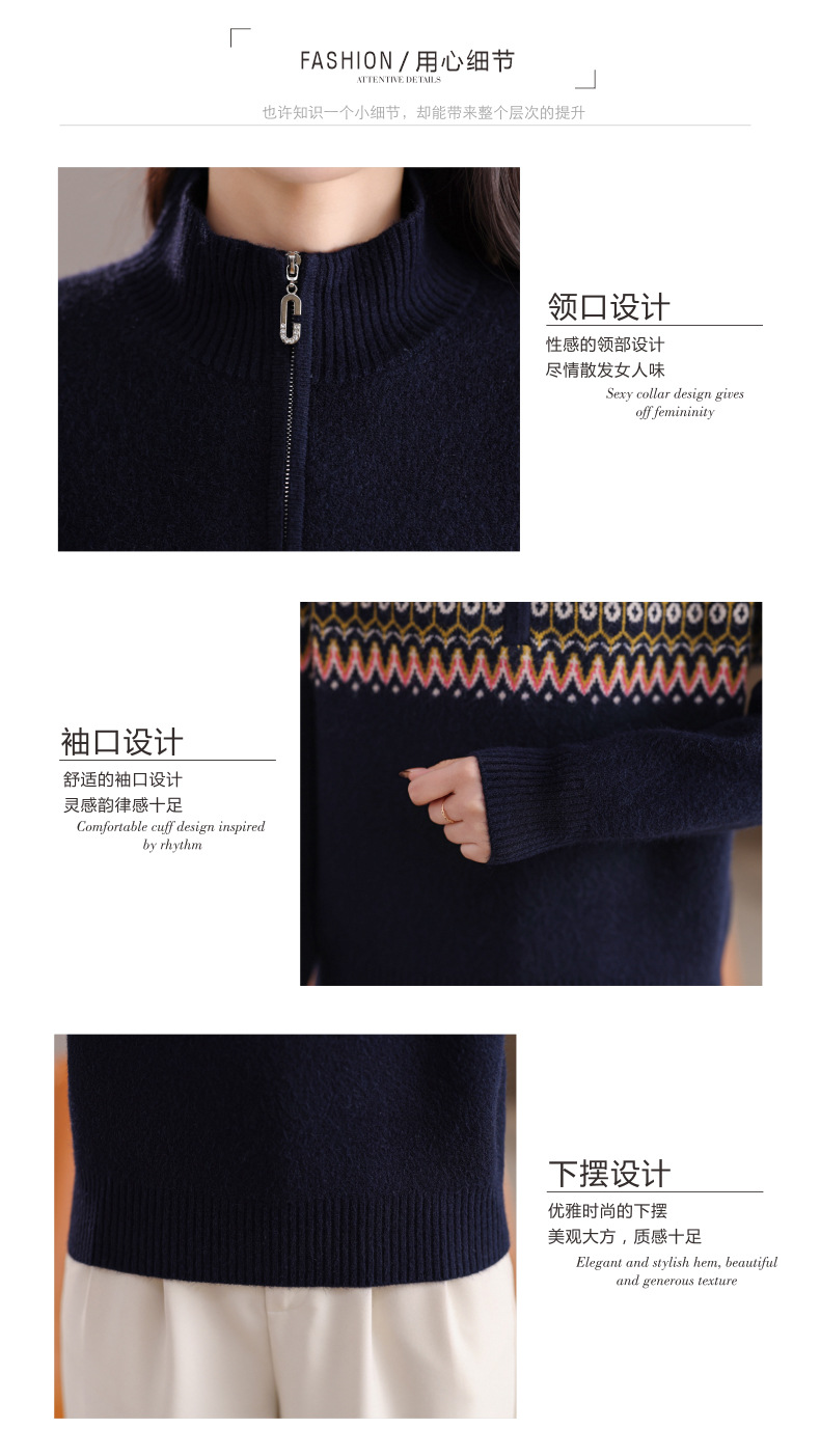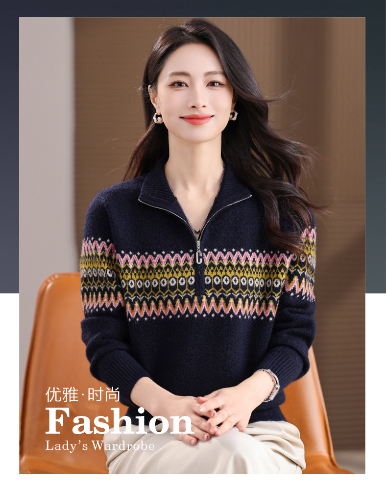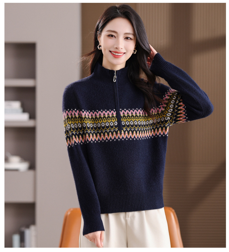 CC 35539半高领拉链打底衫减龄洋气提花保暖针织衫上衣