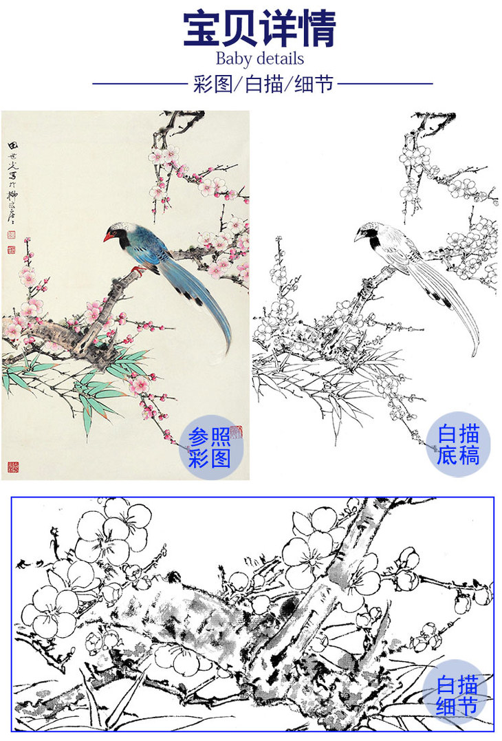 竖幅工笔花鸟白描底稿-周中耀-FV04