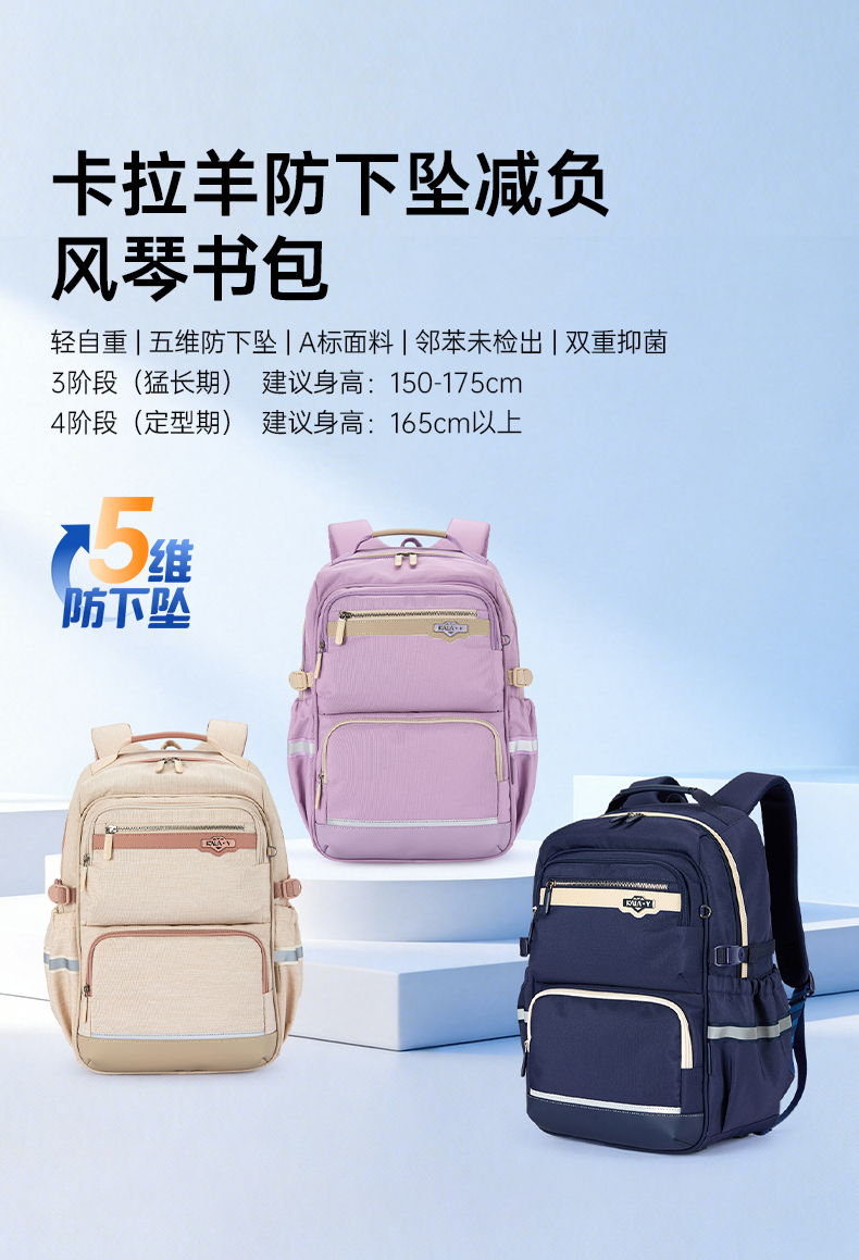 卡拉羊初高中大学生5维减负防下坠风琴书包大容量双肩背包拾光系列CX5573/L