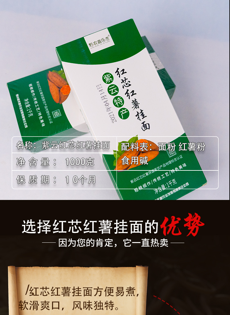 安顺紫云【红芯红薯挂面】1000g 口感劲道 传统工艺 全国包邮(五区不发货)