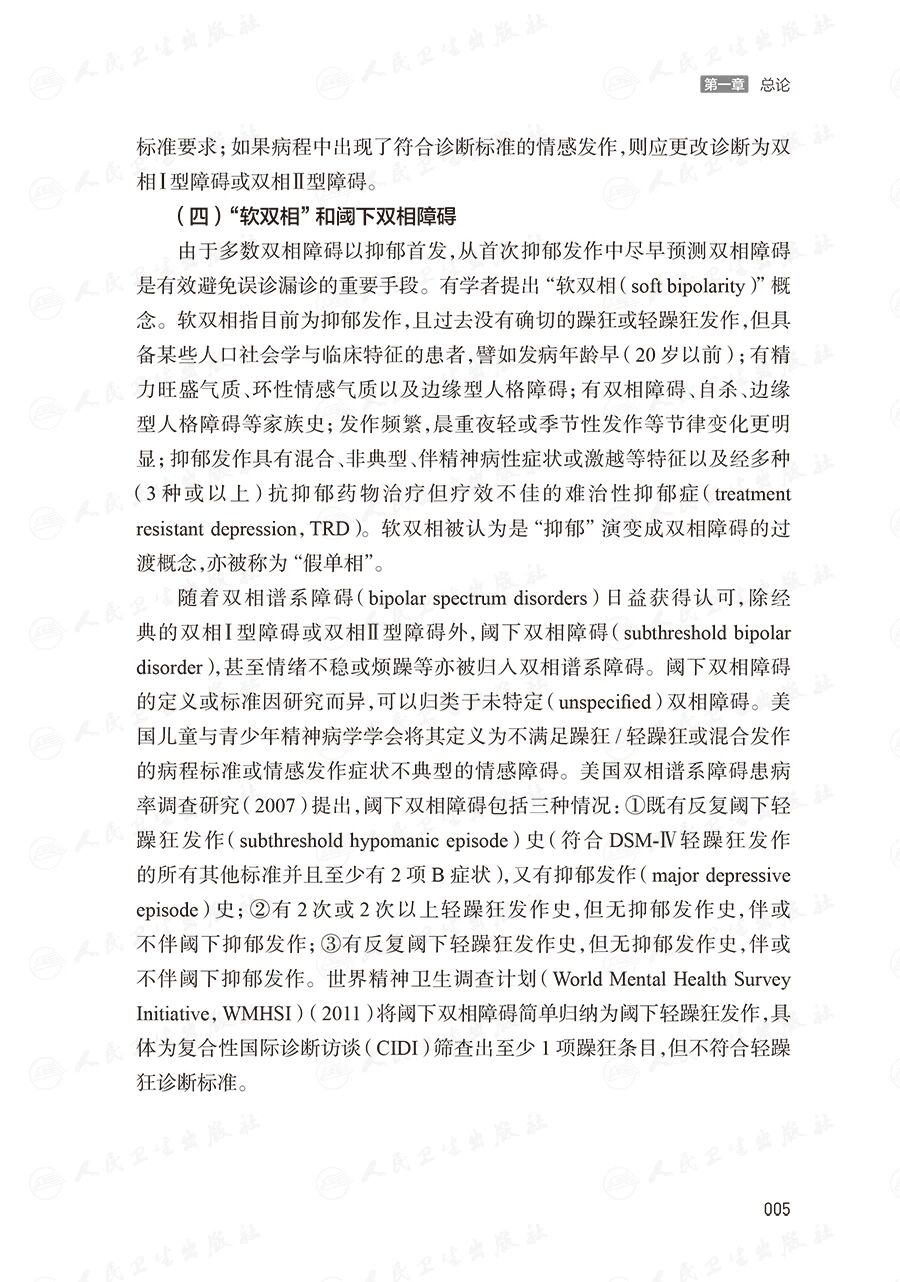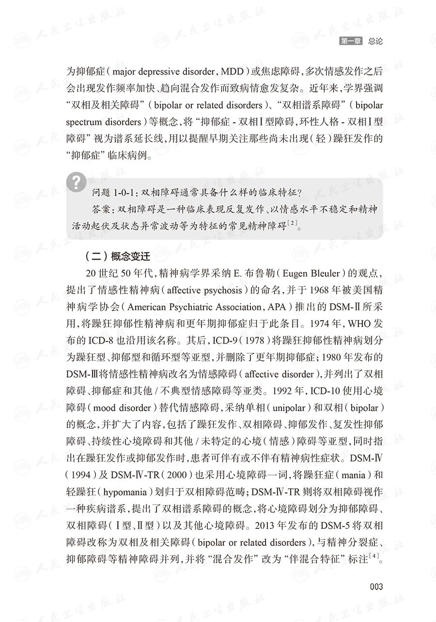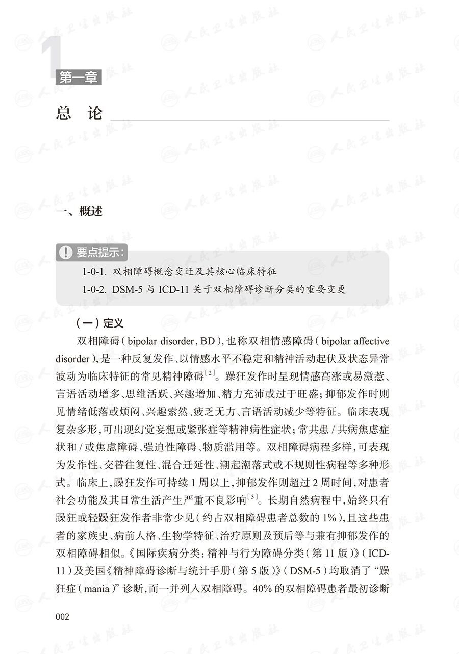 本书参考国内外双相障碍临床实践经验的最新发展,采用国际认可的以循证医学为基础进行推荐的方式编写。内容反映最新的双相障碍诊治进展。