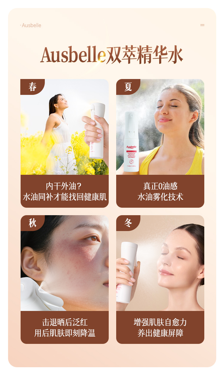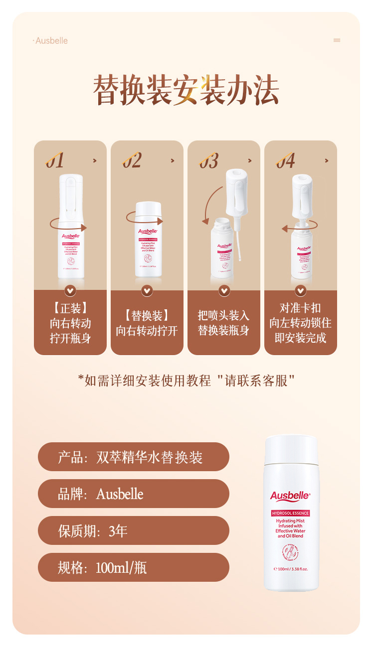 【跨境】Ausbelle澳思蓓 玫瑰双萃精华水100ml 替换装无泵头(效期至2027年5月)