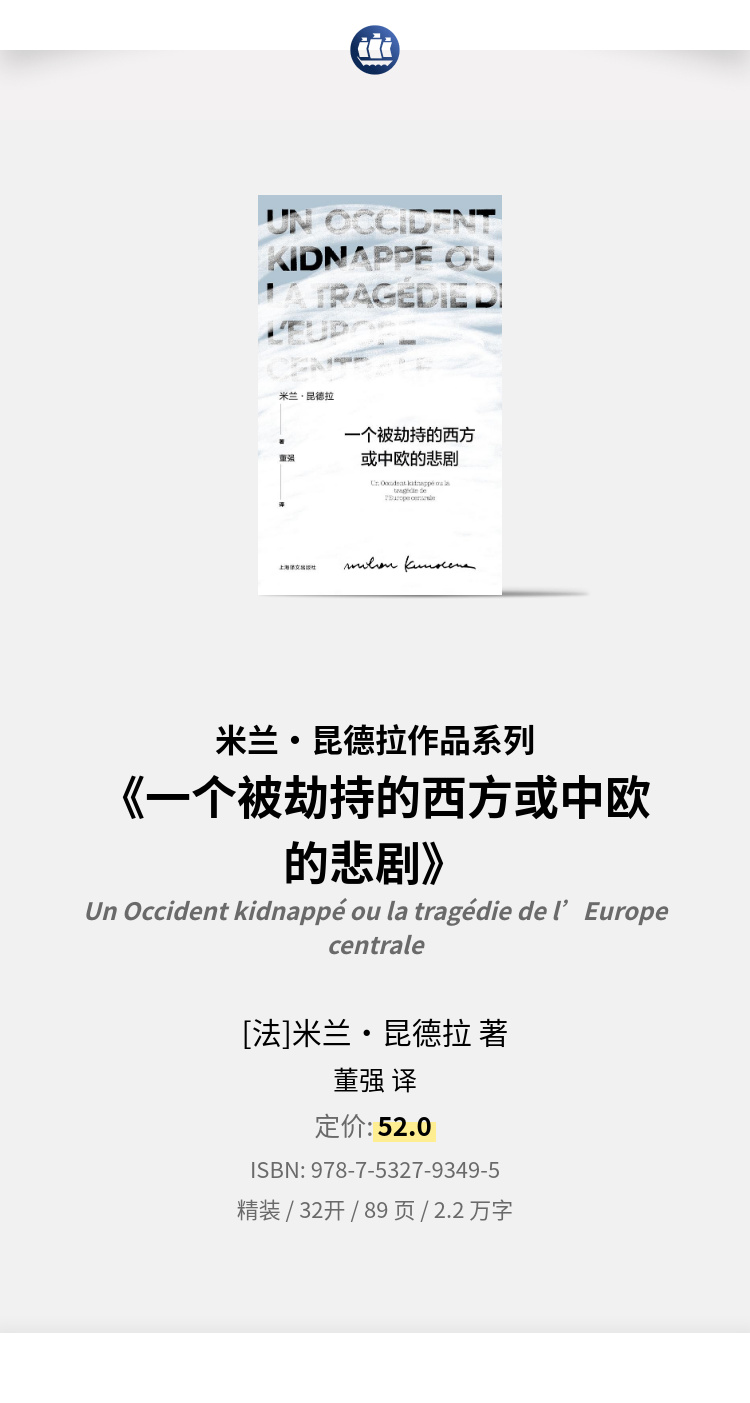 昆德拉最新出版作品,收录作者早年创作的两篇思想文化随笔,曾产生广泛影响。《文学与小国》是昆德拉在1967年捷克作家大会上发言的文字稿。昆德拉从捷克民族的悲剧性命运出发,探讨坚守小国文化特性的意义所在。《一个被劫持的西方或中欧的悲剧》最初发表于1983年。在本文中,昆德拉继续探讨小国文化的重要性,以及它们的灭亡可能带来的灾难。他警告说,欧洲正在失去自身的文化认同感,真正的悲剧将是欧洲文化多样性的丧失。