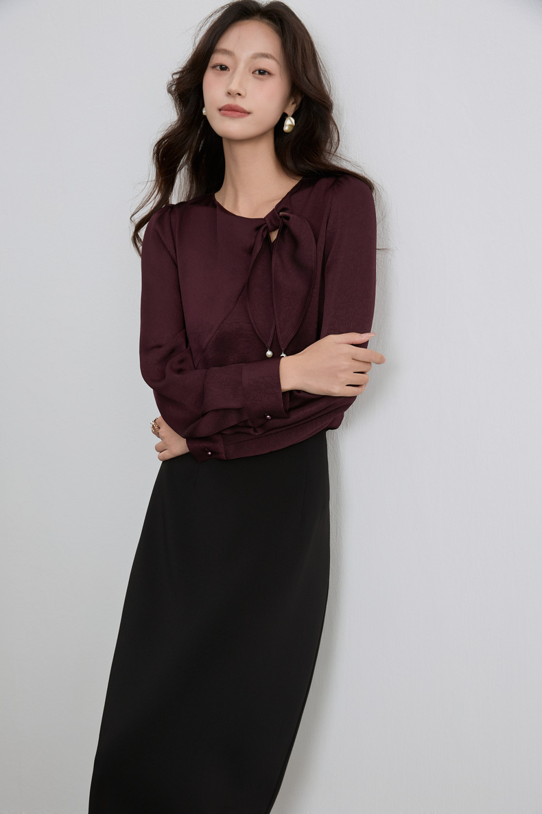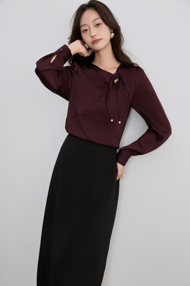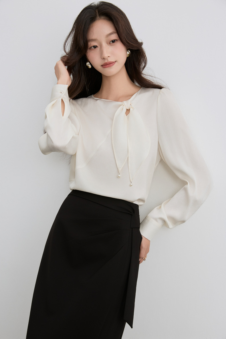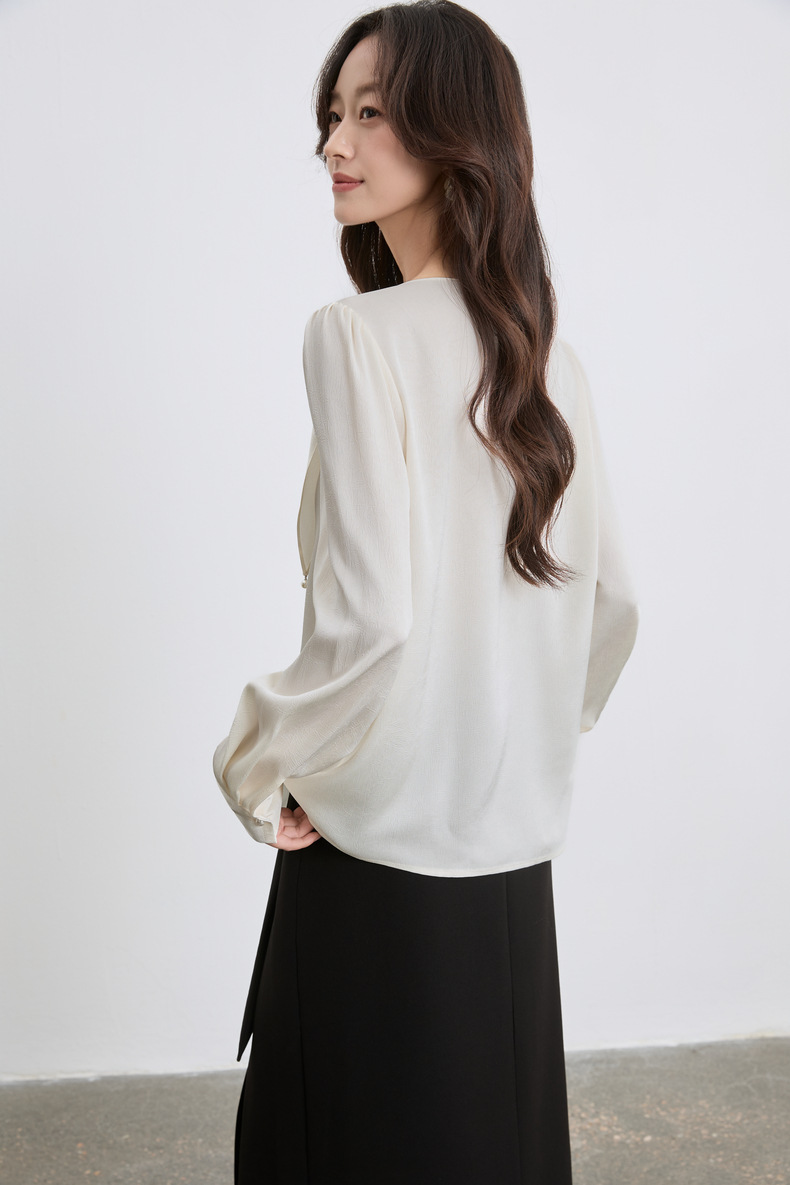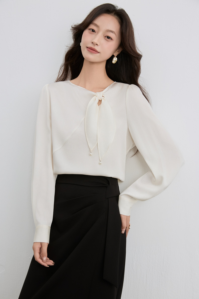 「自」全新升级【铂金会员165/天猫219/差价54】(44144)洛诗琳新款V领系带雪纺衫2025秋季气质百搭飘带雪纺衬衫女