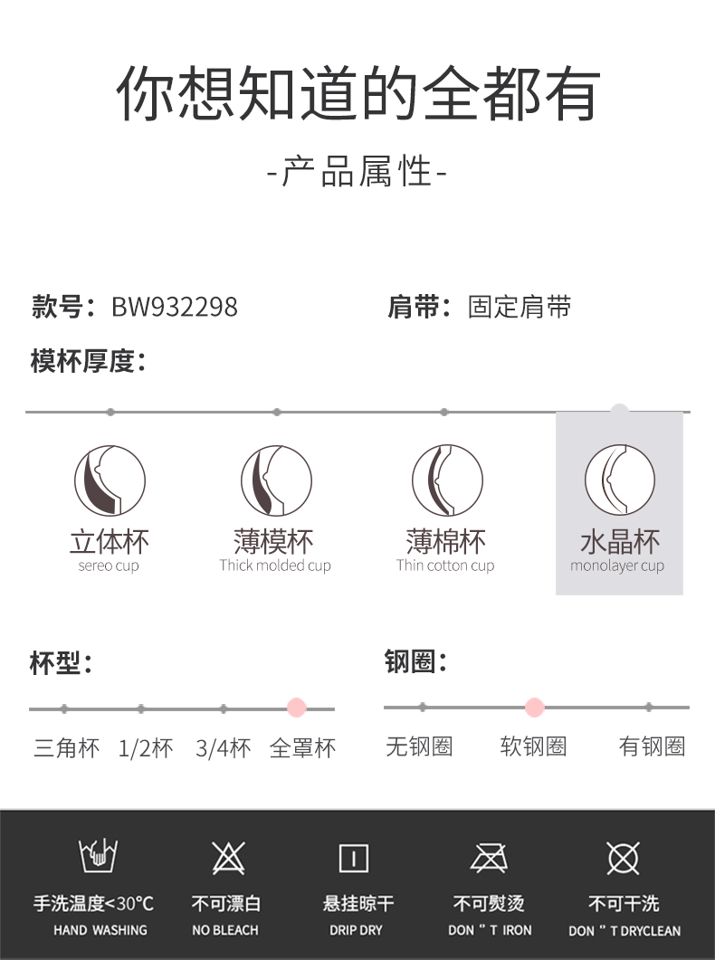 贝佳人深V水晶杯薄款兔耳朵内衣大胸显小BW932298