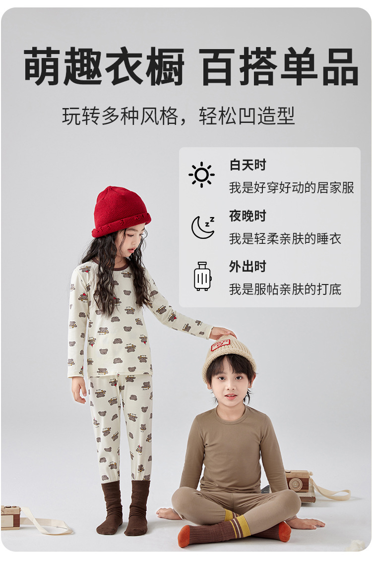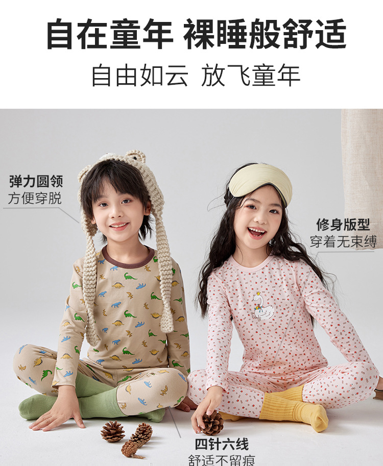 雀说 儿童A类精梳棉秋衣秋裤套装打底睡衣棉毛衫