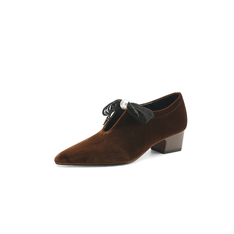 【鞋面材质】:头层牛皮/棕色是进口丝绒