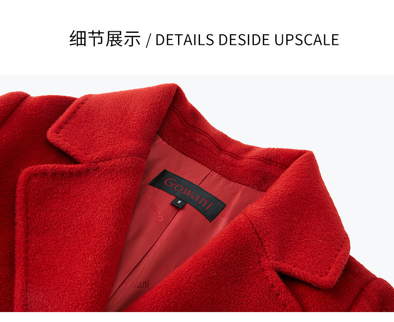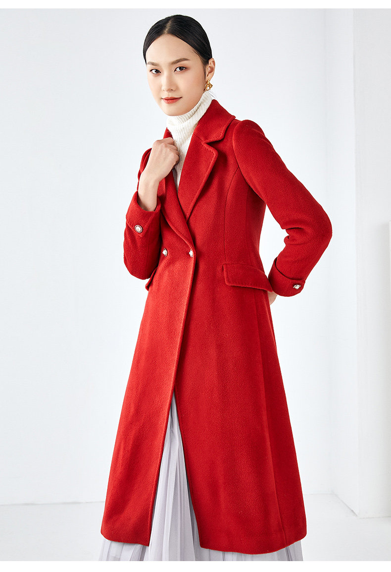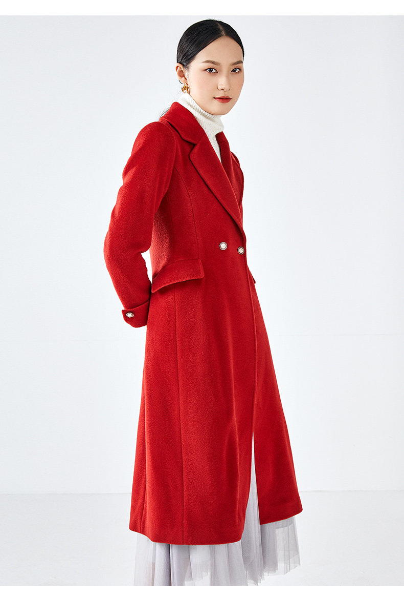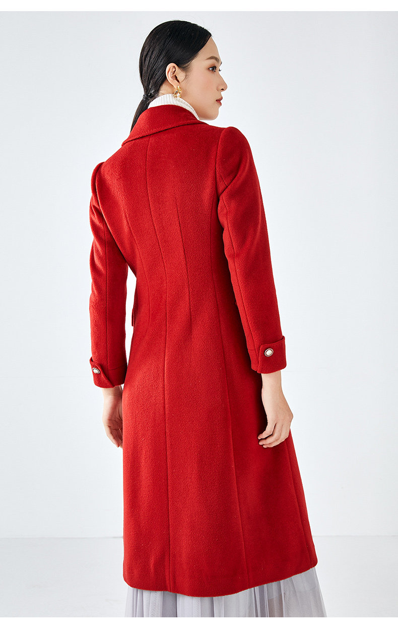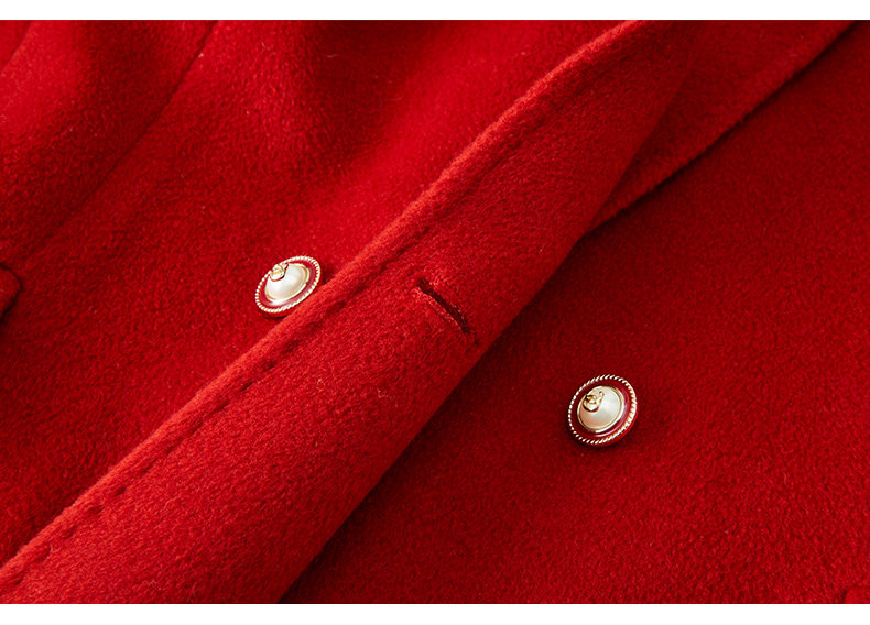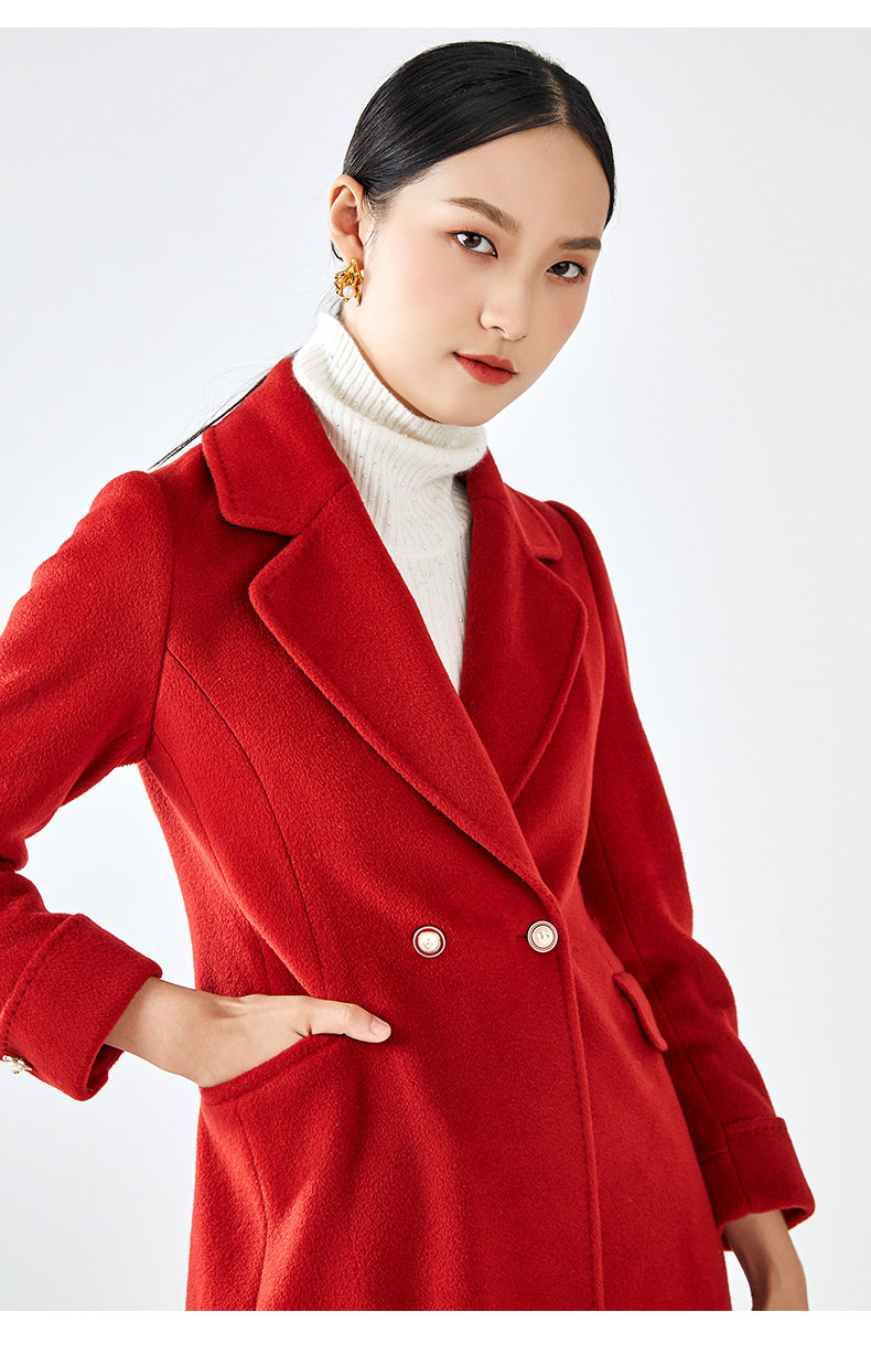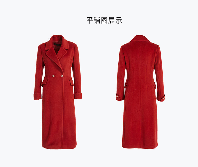【100%绵羊毛】乔万尼冬季红色羊毛大衣立体感复古优雅收腰设计呢子外套ES4A473