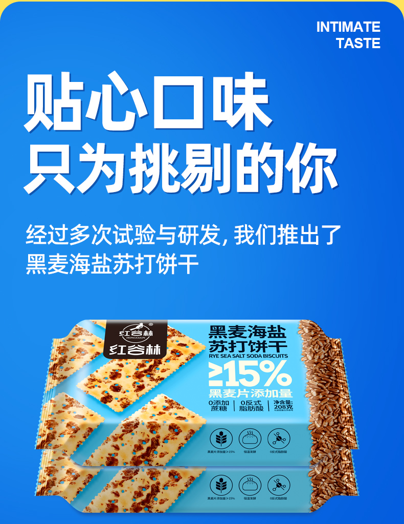 红谷林黑麦海盐苏打饼干梳打咸味饼干休闲零食发酵饼乾休闲大礼包