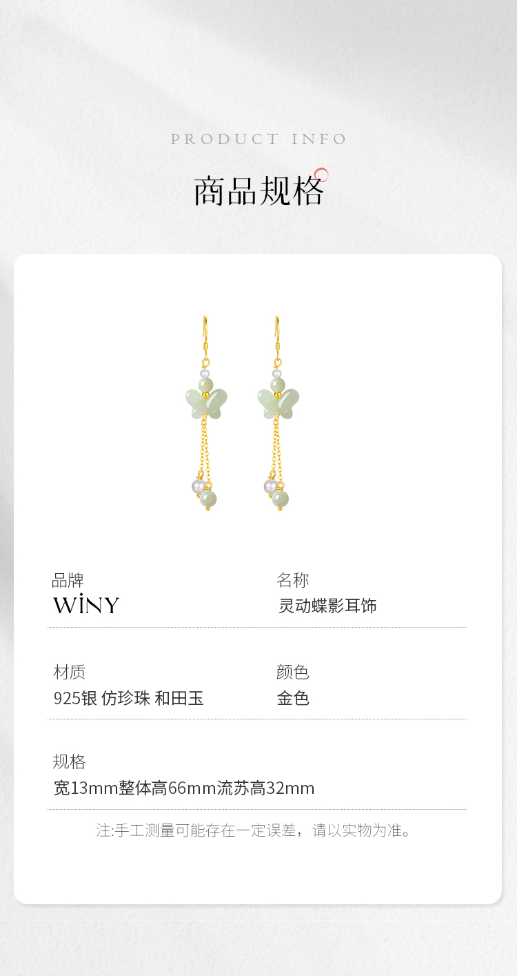 Winy925纯银灵动蝶影耳饰送女友闺蜜节日生日礼物