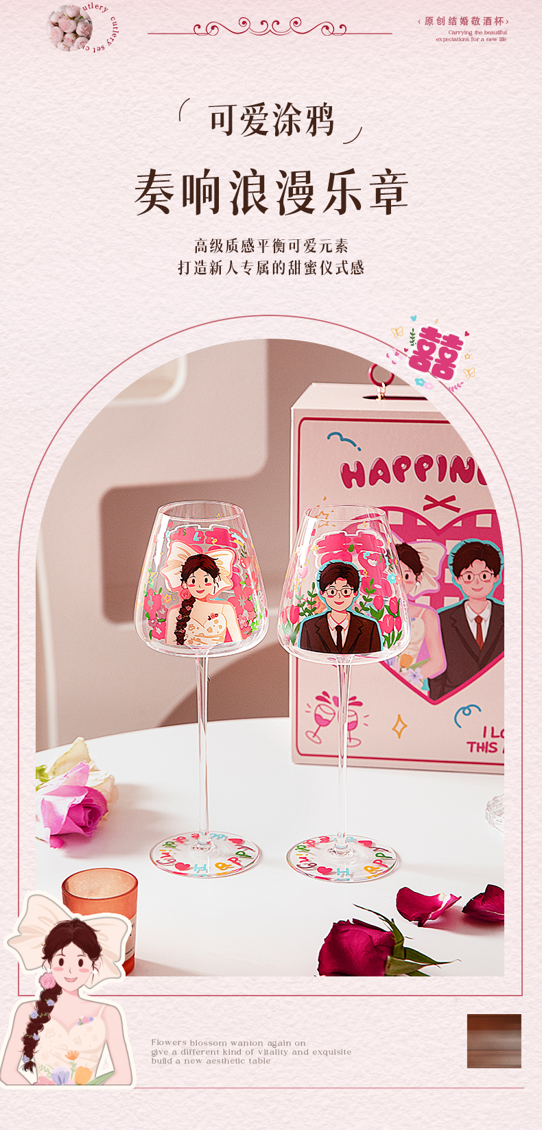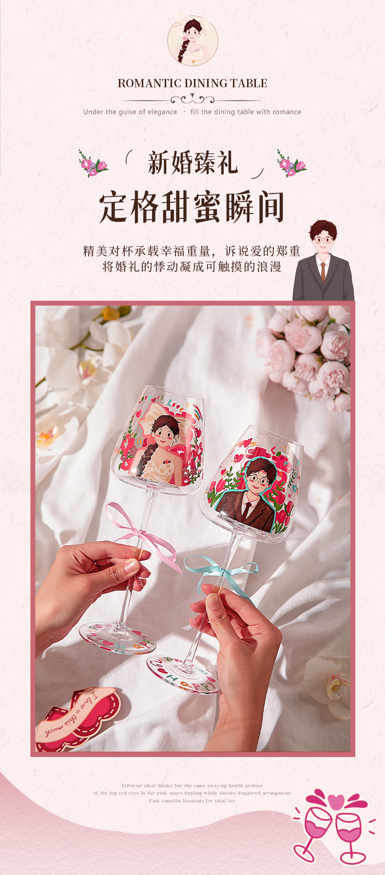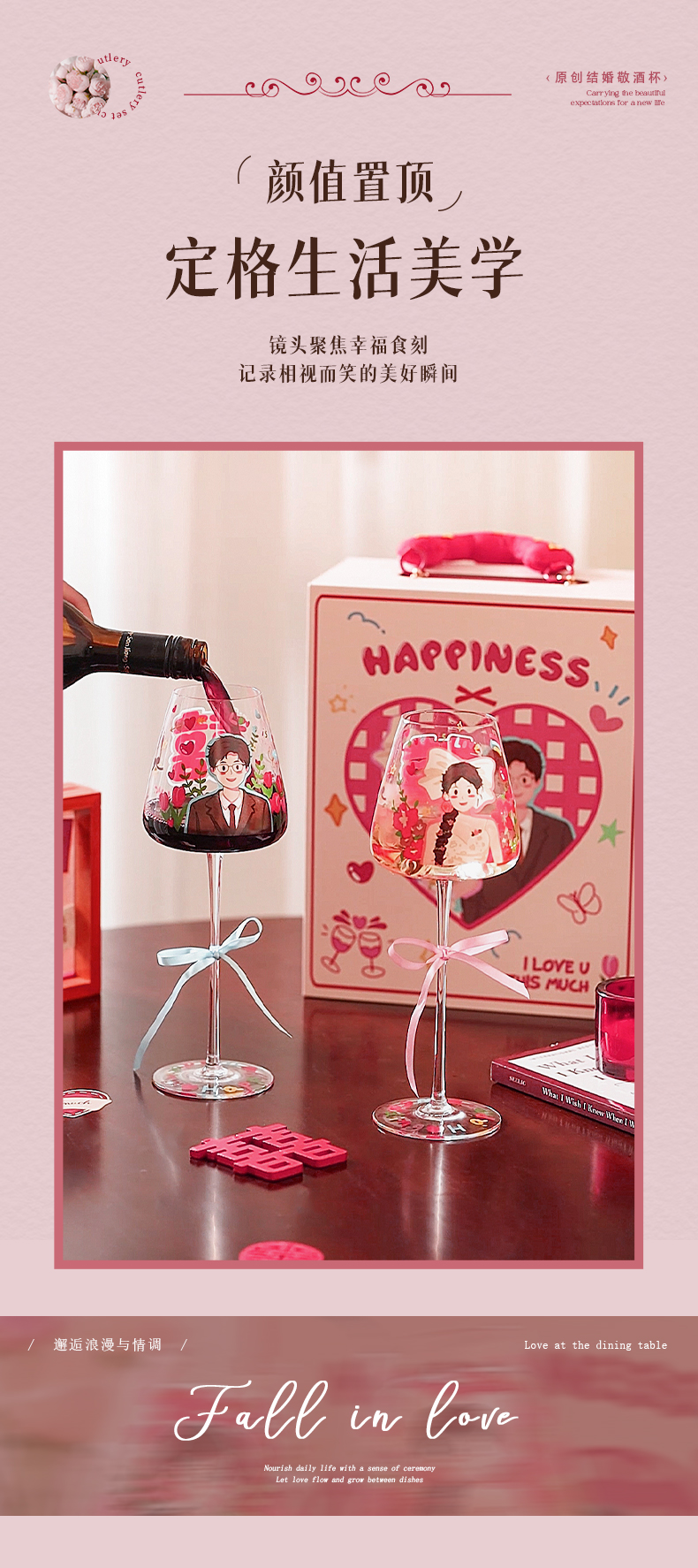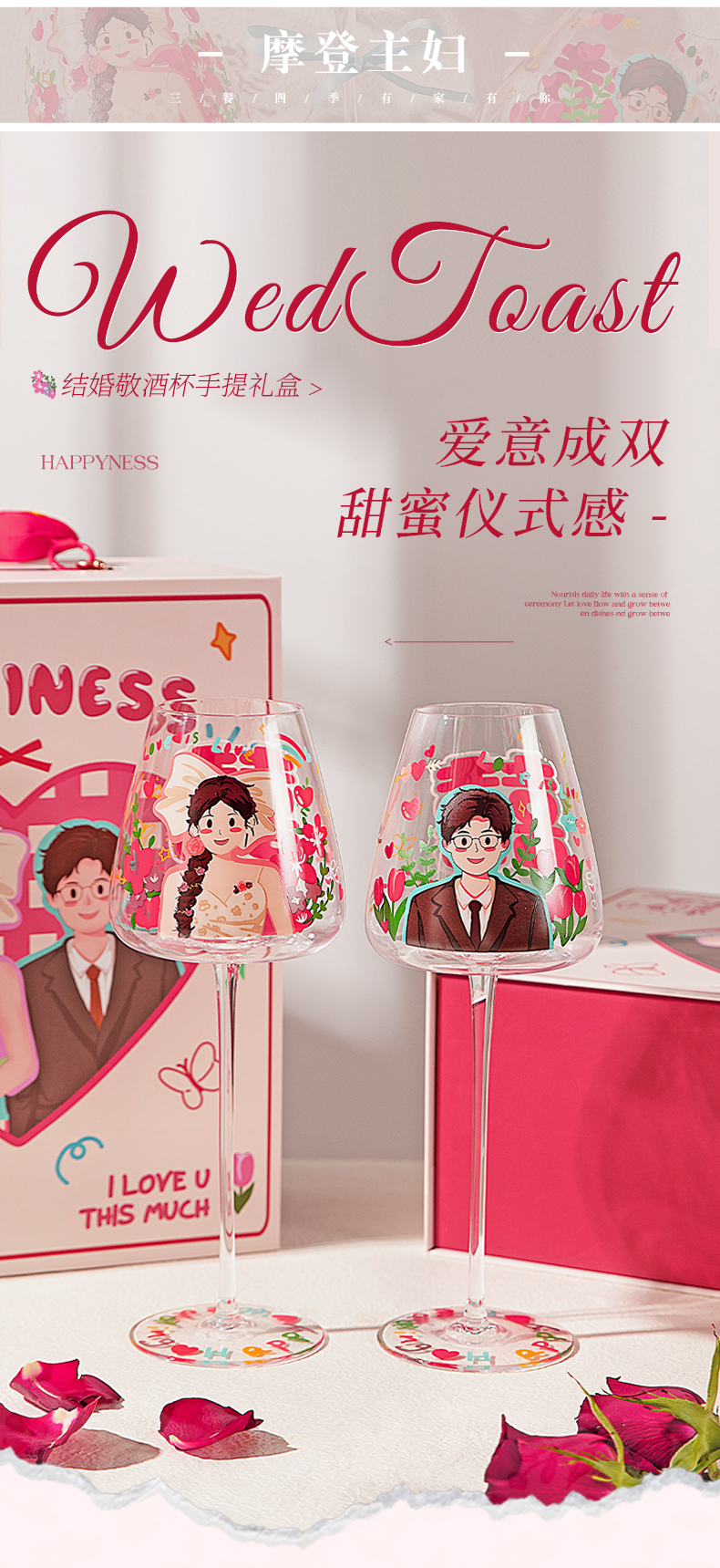 摩登主妇敬酒杯红酒杯套装新婚结婚礼物送新人高脚杯一对杯子礼盒