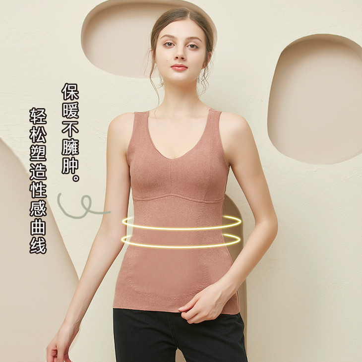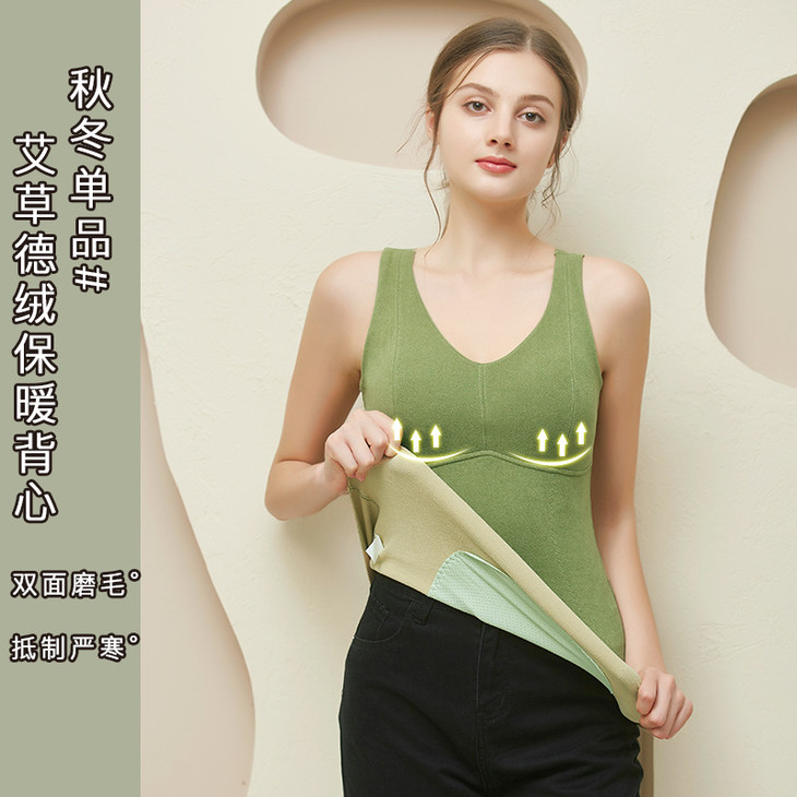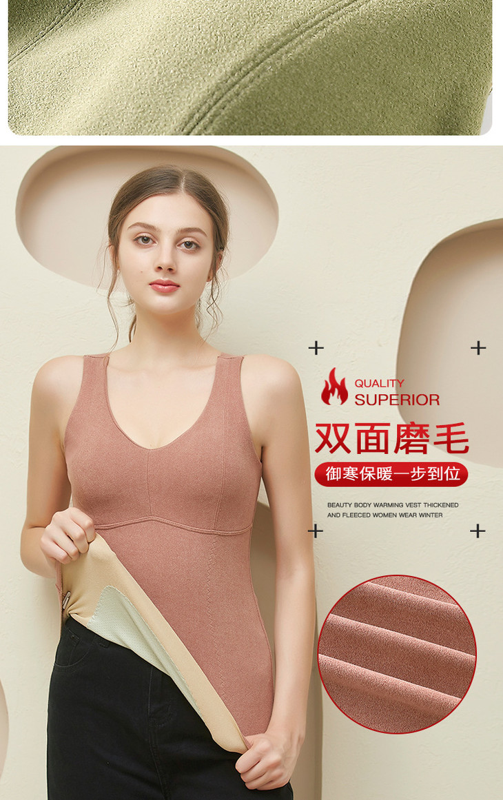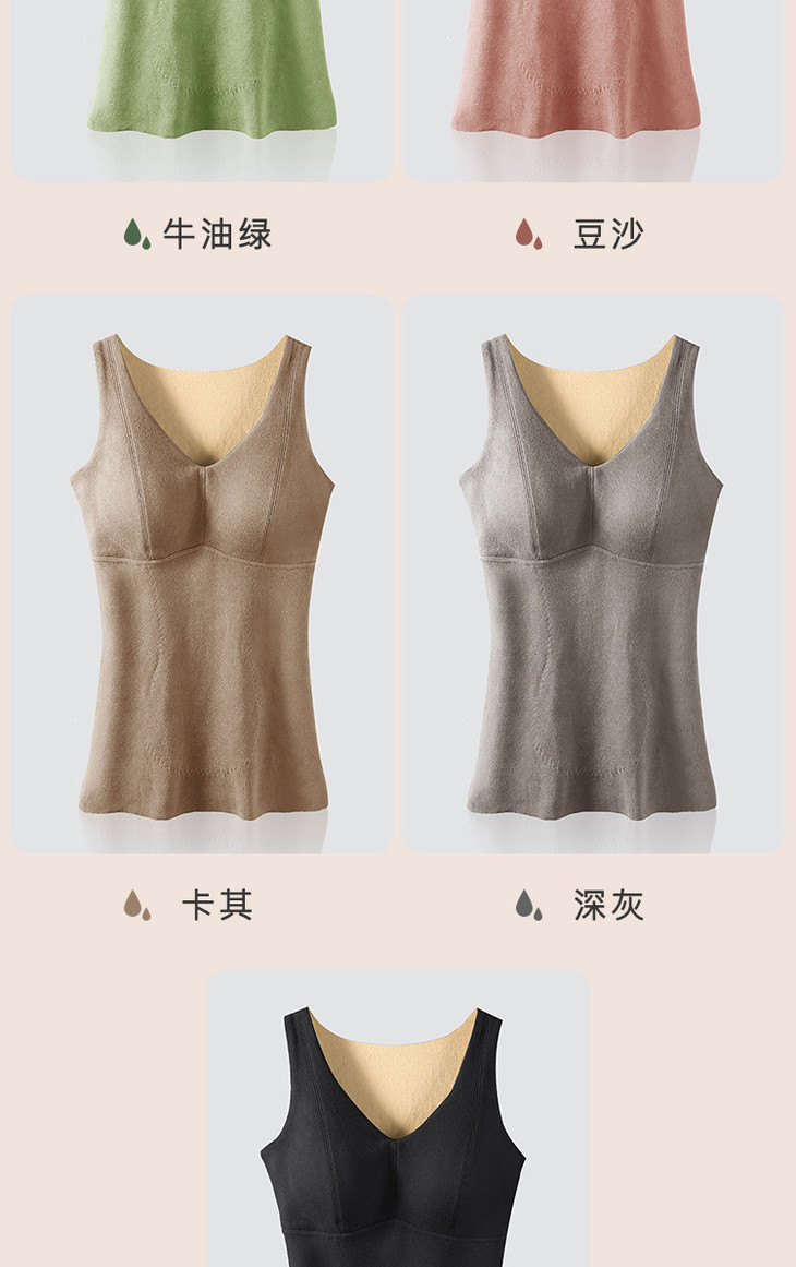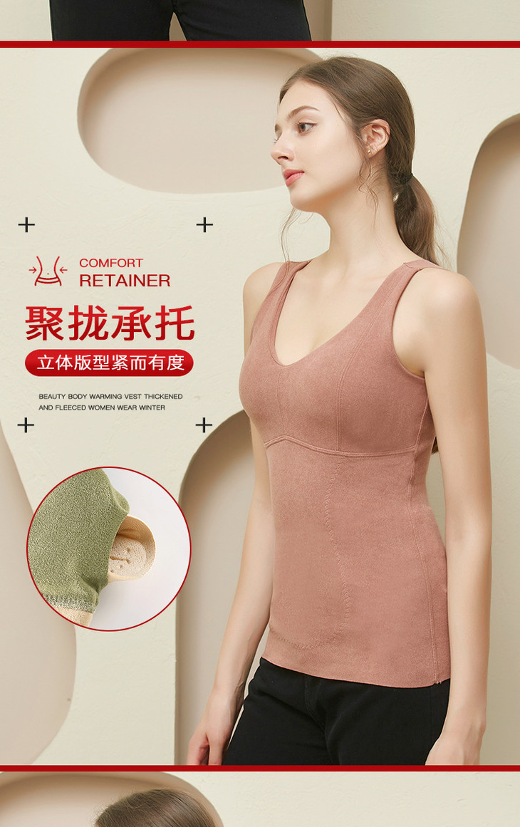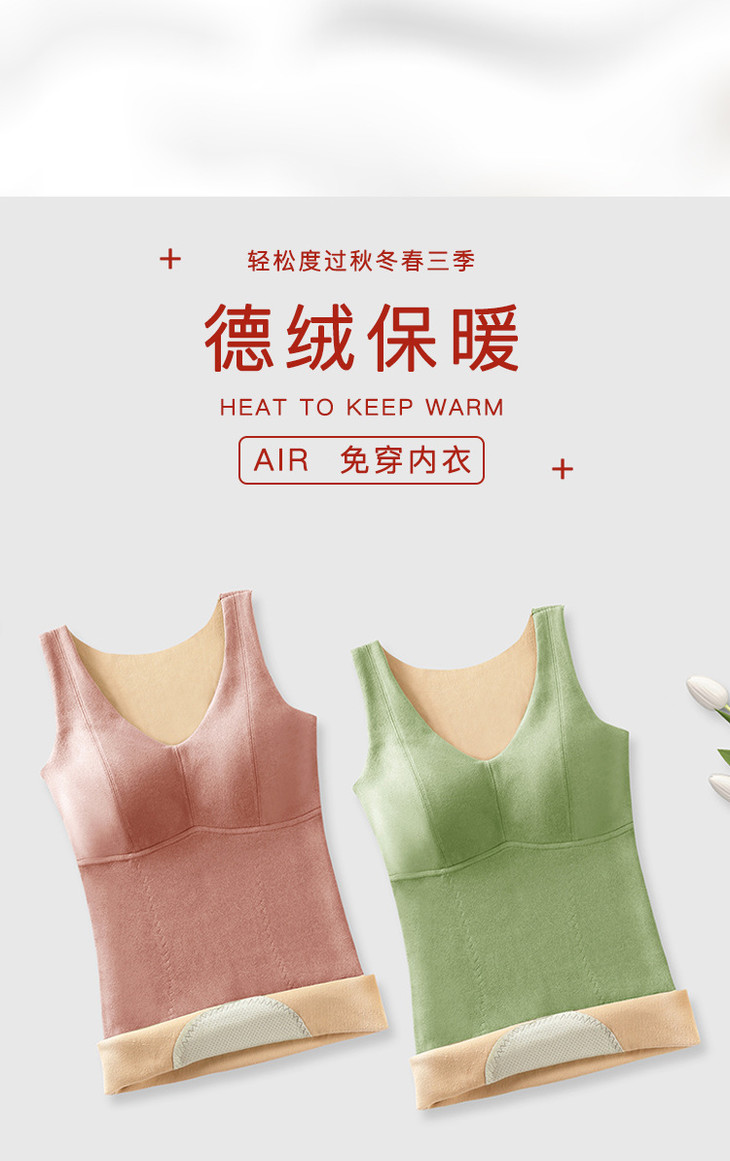 粉丝福利秋冬德绒保暖背心加厚艾马甲 无痕带胸垫修身V领上衣打底内衣QSY