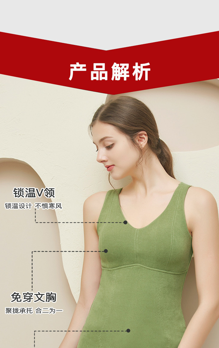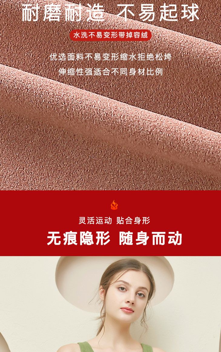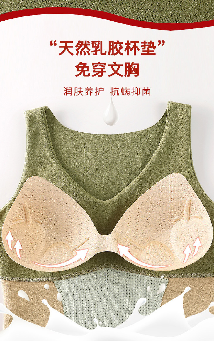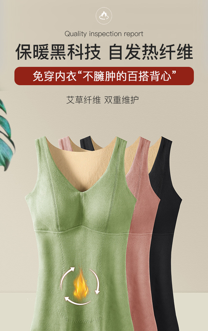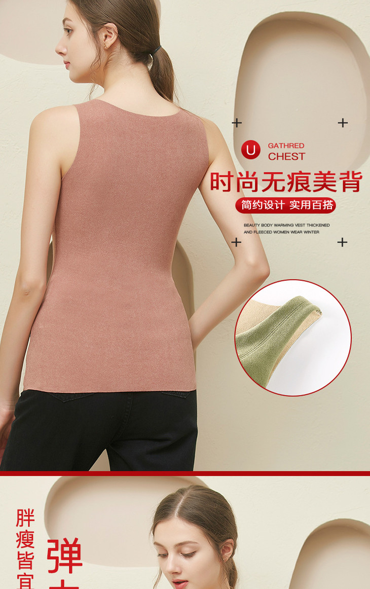粉丝福利秋冬德绒保暖背心加厚艾马甲 无痕带胸垫修身V领上衣打底内衣QSY