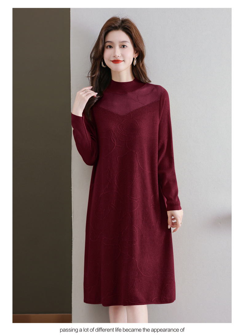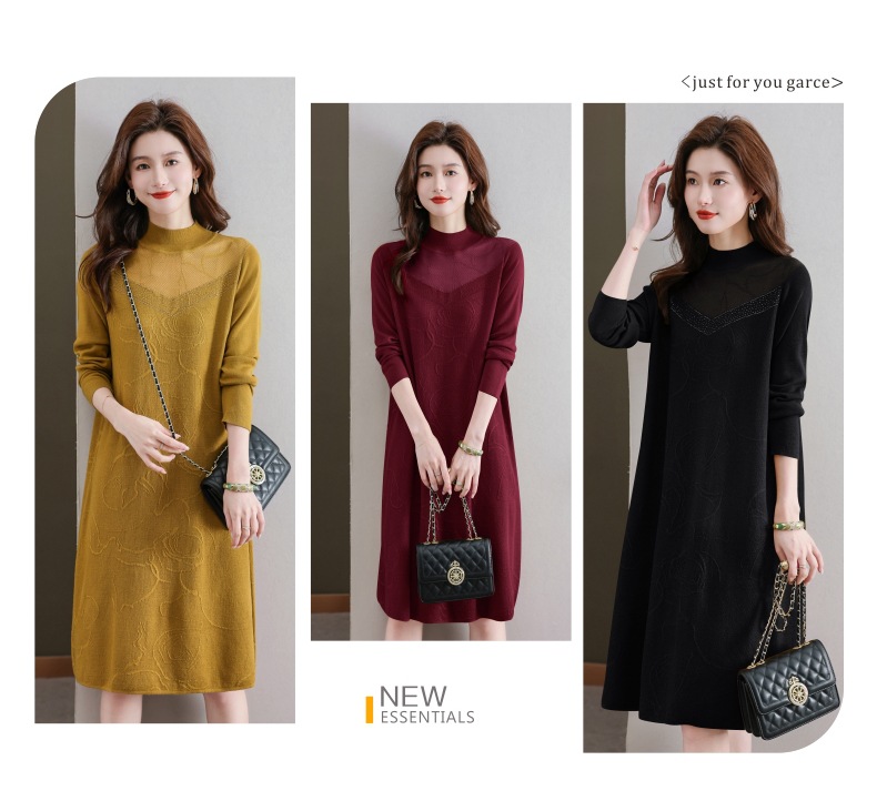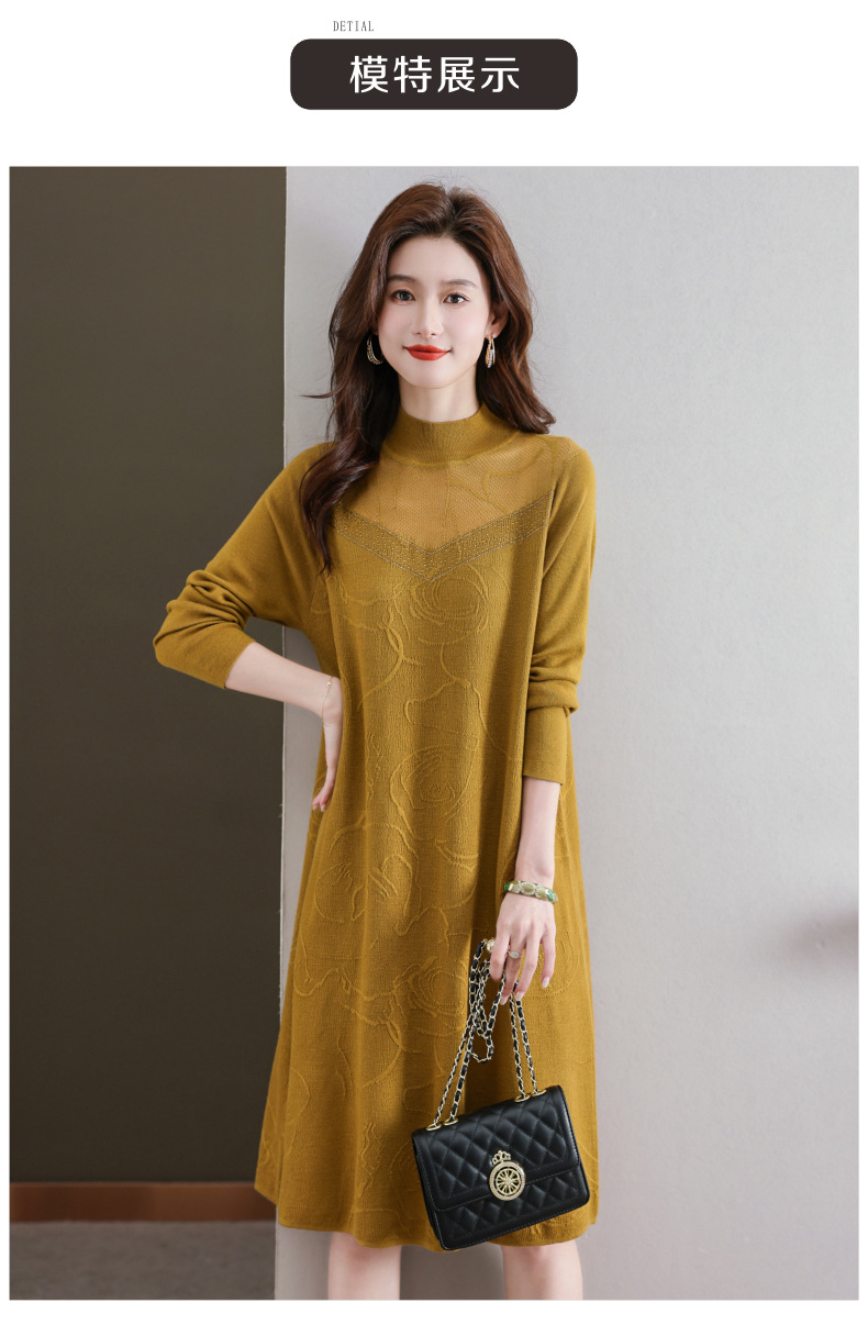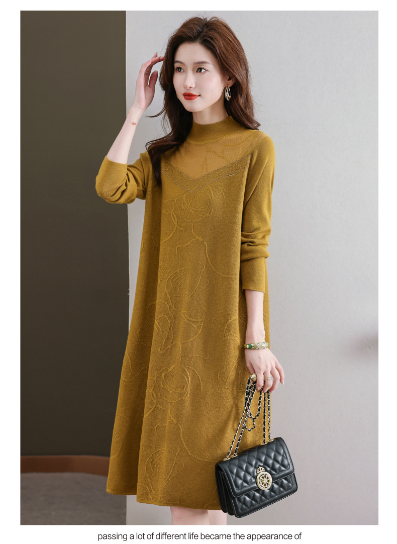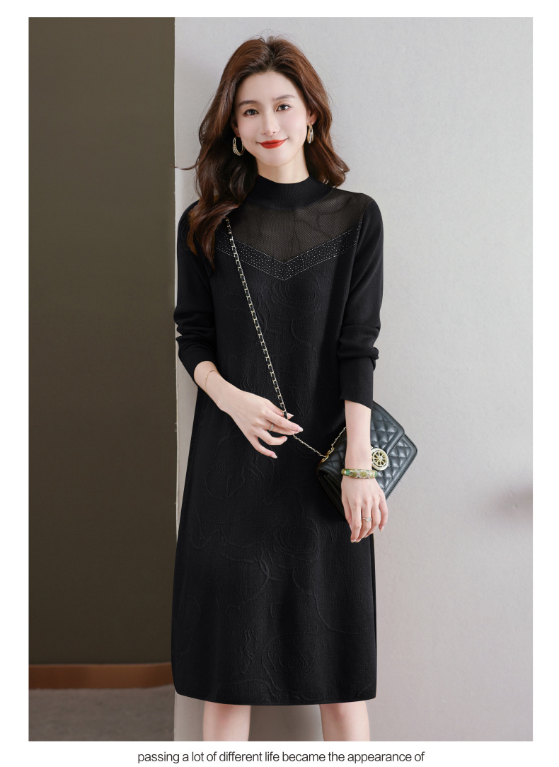 中年妈妈连衣裙,新款女早秋洋气减龄毛衣裙秋季长袖针织打底衫CC-33-62365
