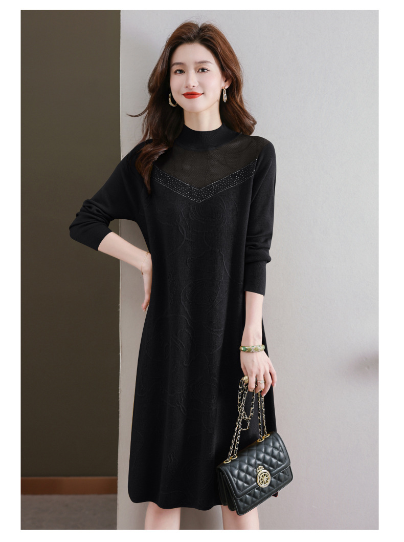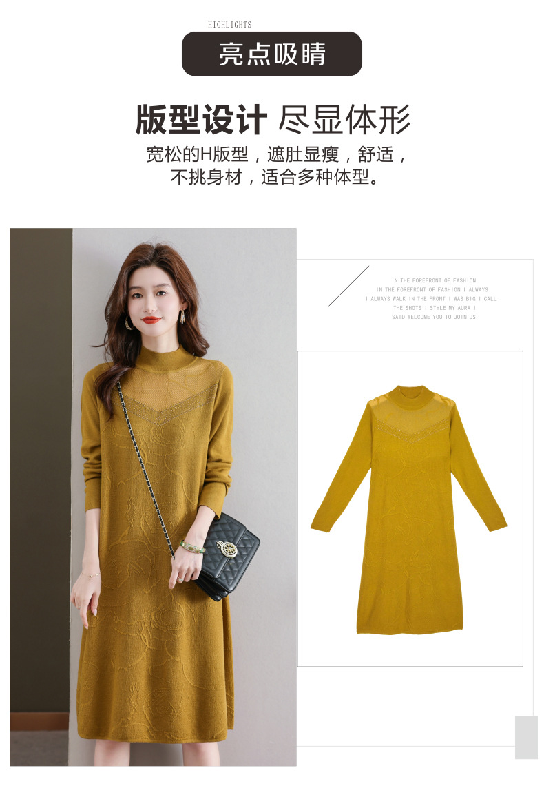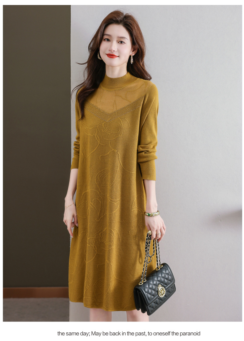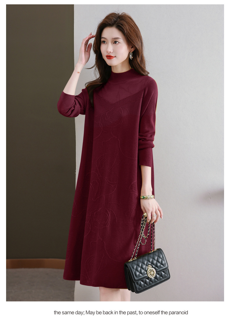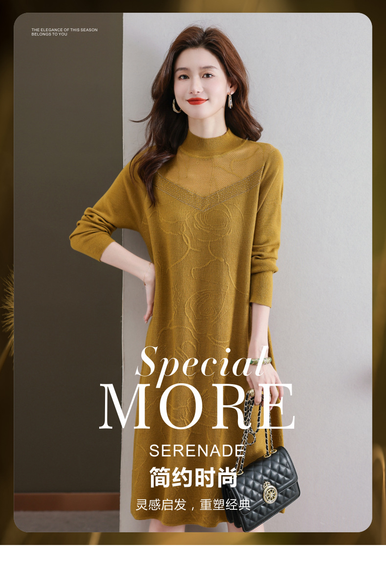 中年妈妈连衣裙,新款女早秋洋气减龄毛衣裙秋季长袖针织打底衫CC-33-62365