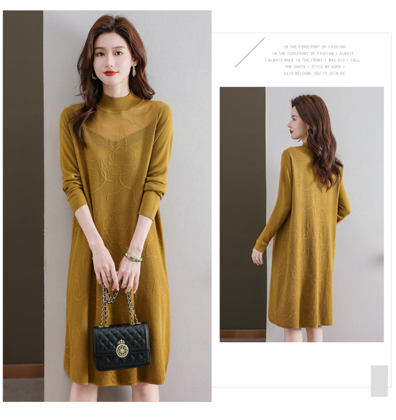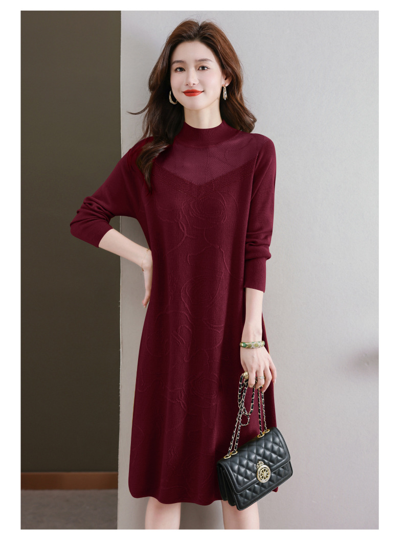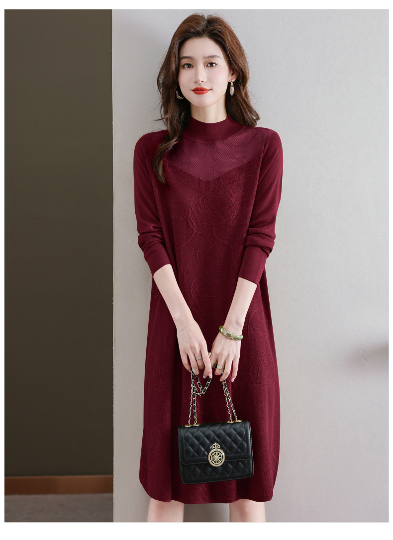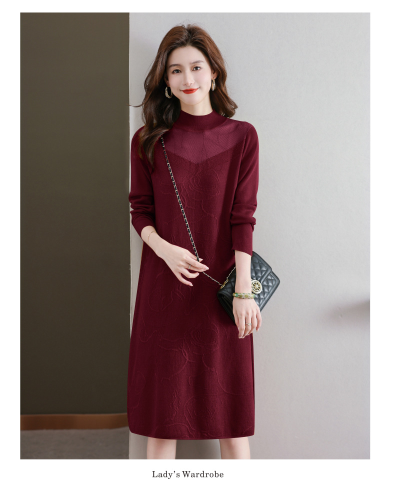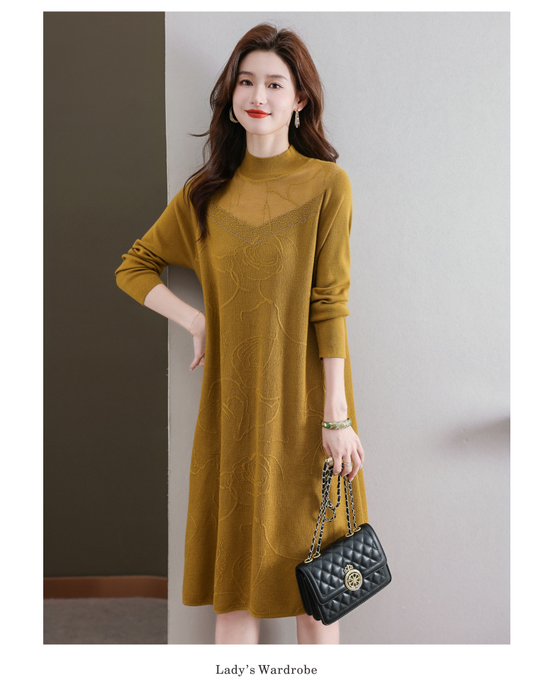 中年妈妈连衣裙,新款女早秋洋气减龄毛衣裙秋季长袖针织打底衫CC-33-62365