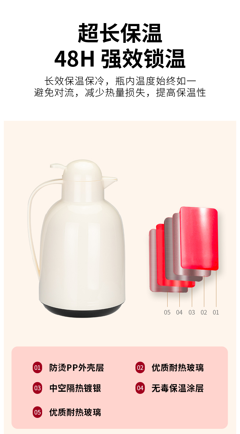 摩登主妇玻璃内胆保温壶2024新款家用热水瓶大容量宿舍学生暖水壶