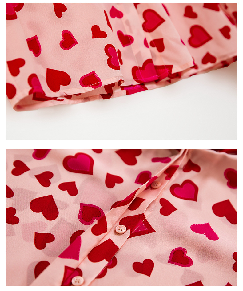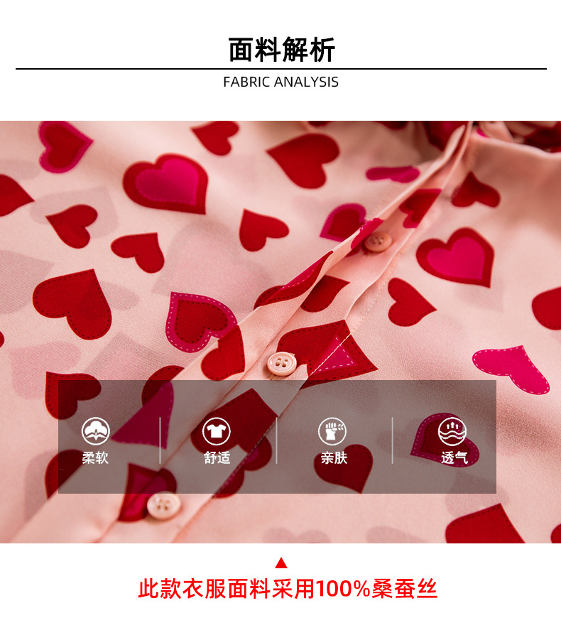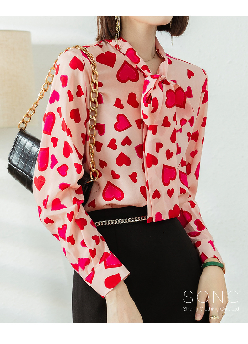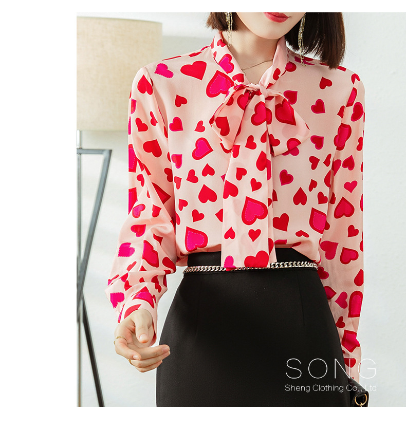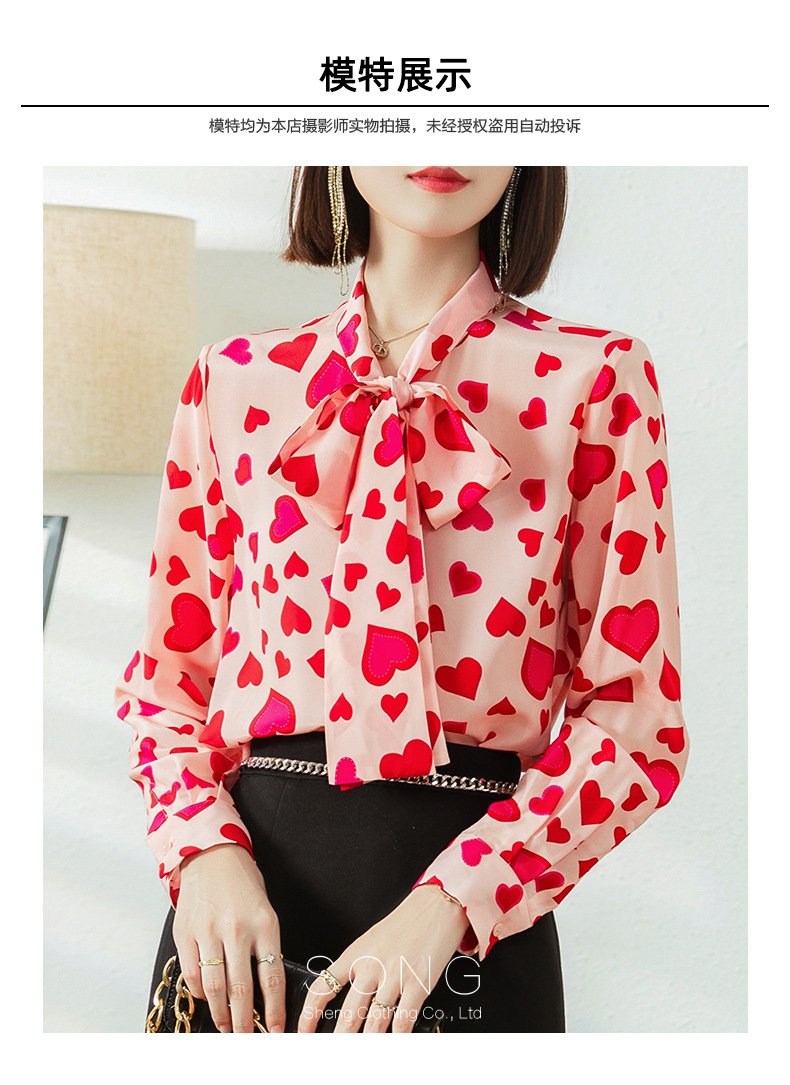 真丝长袖衬衫时尚新款爱心印花桑蚕丝蝴蝶结衬衣 SS-SF210855