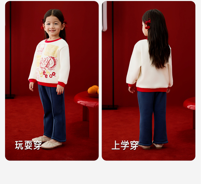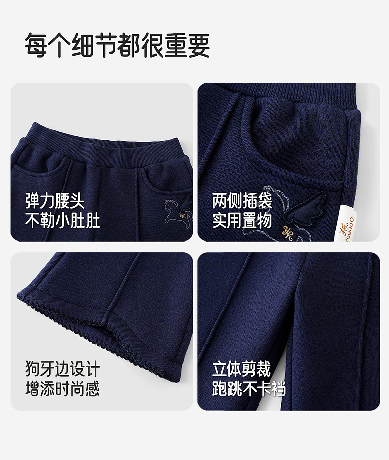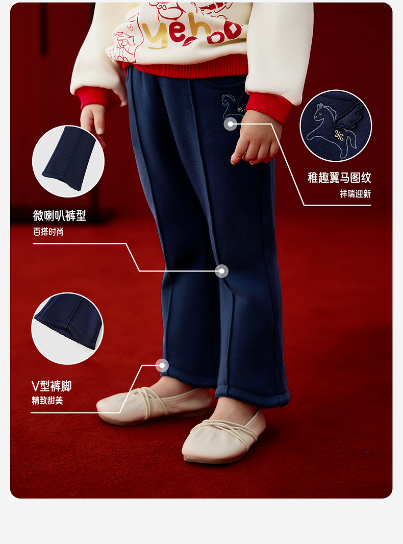 【商场同款】英氏儿童长裤秋冬保暖简约纯色新年外穿针织裤子新款