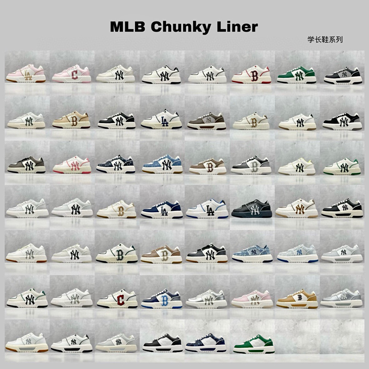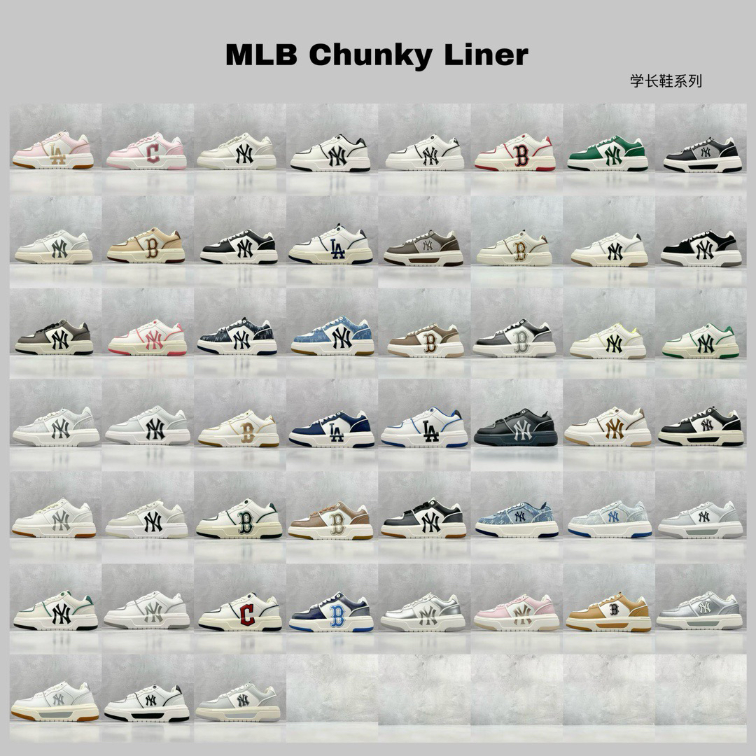 NY平台订单 MLB Chunky Liner 学长鞋系列低帮老爹风轻量增高厚底百搭休闲运动慢跑鞋 春季学院穿搭爆款 Korea韩国限定联名NY美国榄球纽约洋基队 独家一比一RB+MD组合大底 高频后跟小人Logo精准对位立体饱满 正确网布加超迁鞋面 转印中底走线紧密 转印Logo工艺表层防刮不掉色