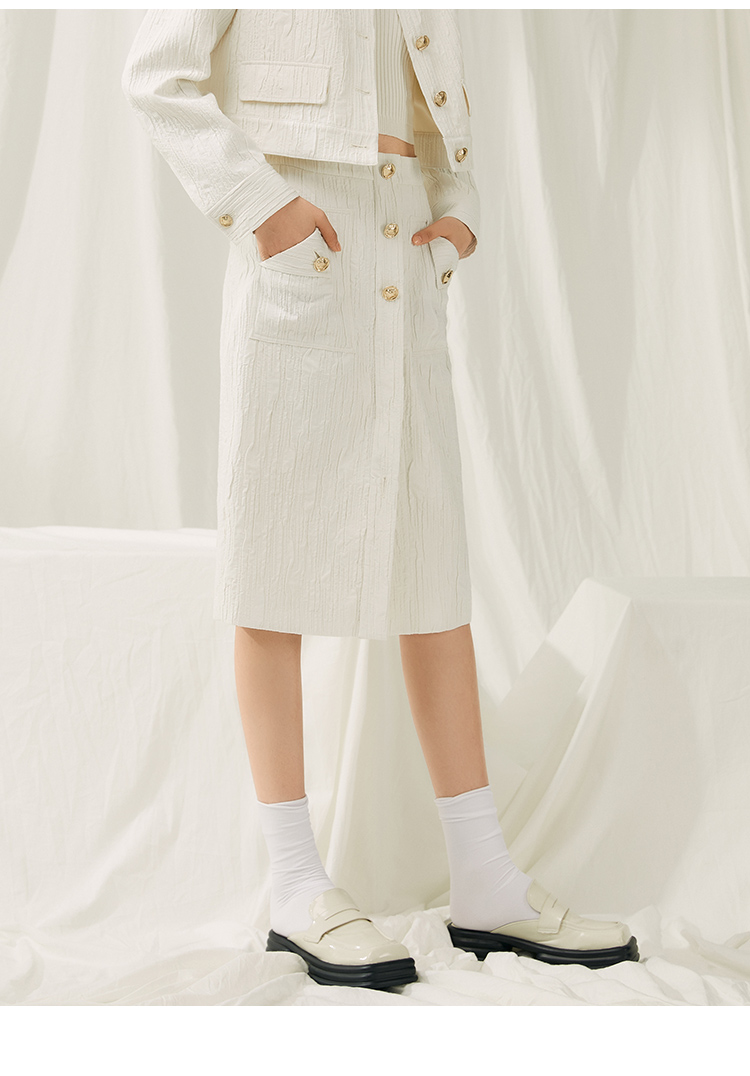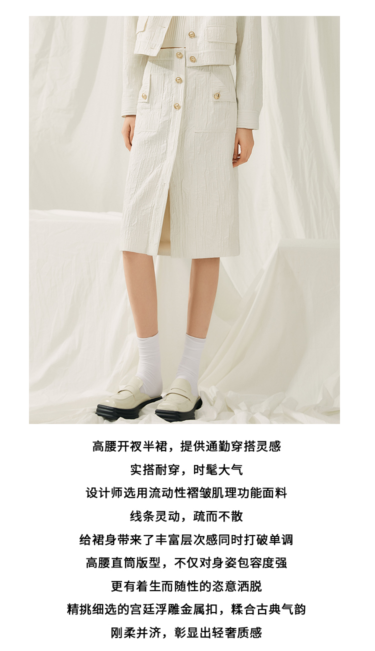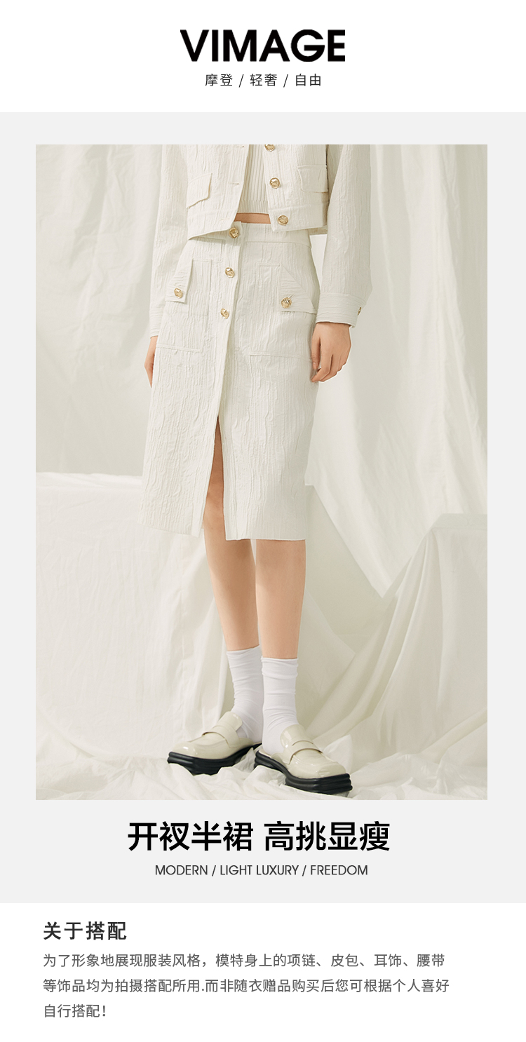 VIMAGE纬漫纪春季新款白色开叉半裙V1906502